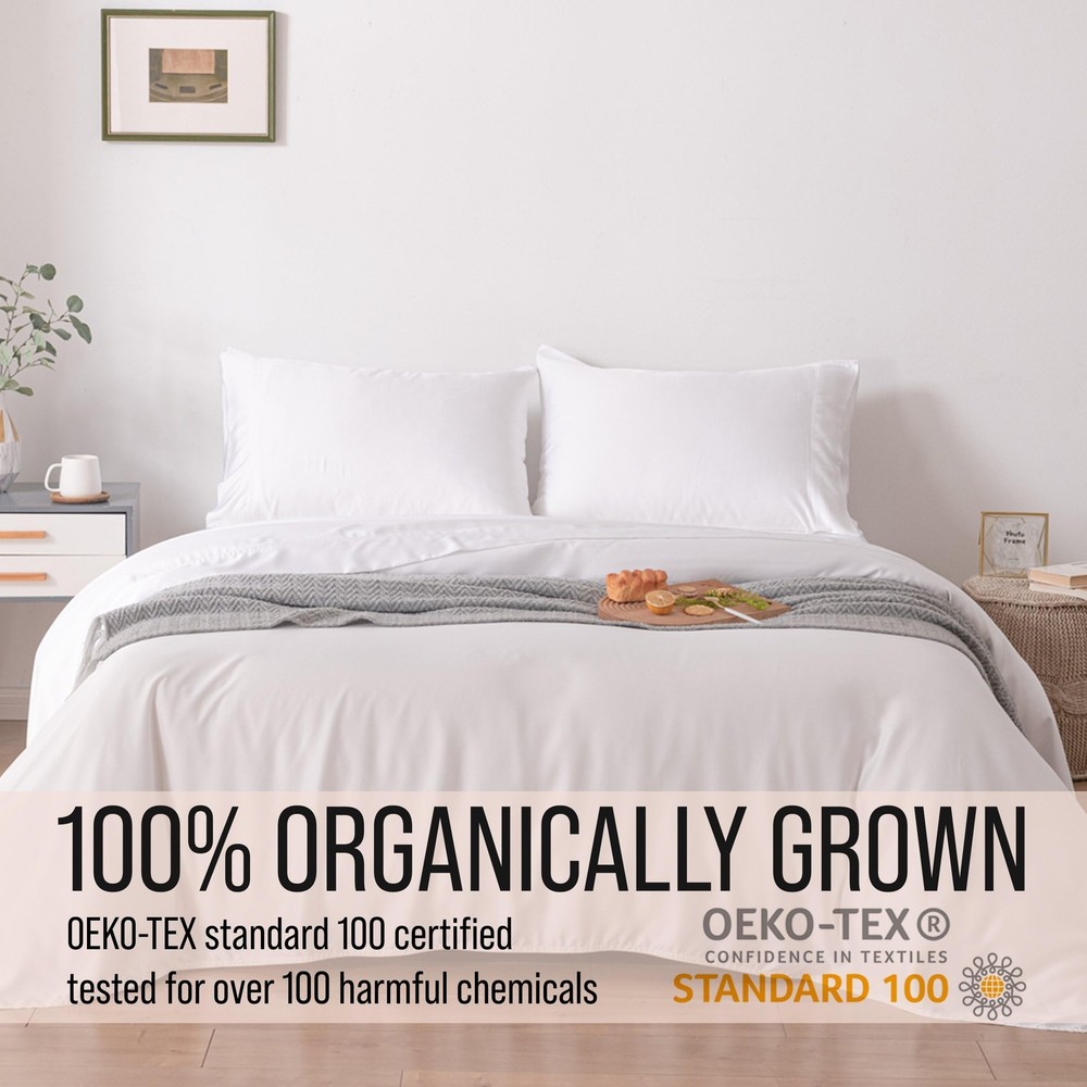 Luxury King Size Sheet Set Crafted from Organically Grown 100% Viscose Made From Bamboo RECHARGE YOUR SOUL- Embrace yourself in the luxury of 100% viscose made from bamboo sheets and you will wake up feeling renewed and refreshed. Lightweight and silky, hypoallergenic and moisture-wicking, these sheets keep you cool in summer and warm in winter. REDEFINE YOUR LIFESTYLE- With a 400 thread count, the superior quality of these 100% viscose derived from bamboo sheets are a dream to sleep on, getting softer with every wash. The 18" extra deep pocket fitted sheet will fit even the most plush pillow top mattresses. RENEW YOUR SLEEP - You can rest well in luxury bedding knowing that your sheets have been tested and certified to be free of over 100 harmful chemicals with the OEKO-TEX 100 certification. REINVIGORATE YOUR RELATIONSHIP - Enhance every part of your relationship as you cozy up with your loved one and enjoy the silky, soft, woven bliss of 100% viscose made from bamboo. ADD TO CART WITH CONFIDENCE in our 100% Customer Satisfaction Guarantee!