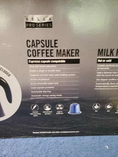 Bella Pro Series Capsule Coffee Maker and Milk Frother CM7006C-UL Black #NO1133