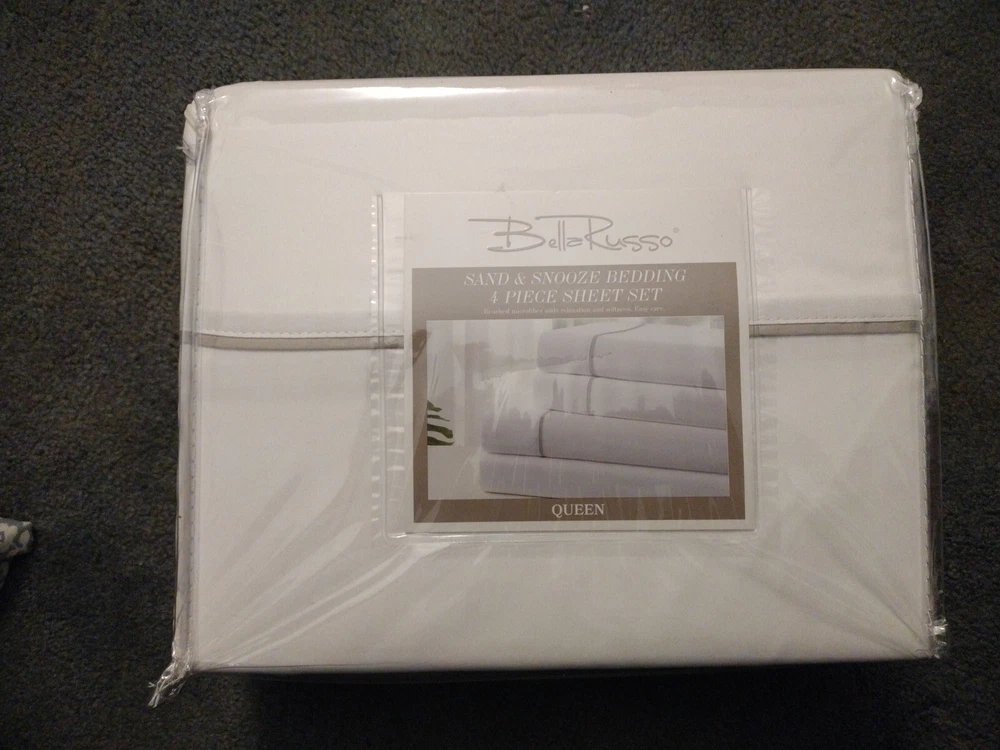 Elevate the comfort and style of your bedroom with this 4-piece Bella Russo Sand And Snooze Bedding Set. The queen size sheet set includes a fitted sheet, flat sheet, and pillowcase, all made of brushed microfiber material with deeper pockets for a snug fit. The solid white color with sand trim and all-season insulation make it a perfect fit for any room, while the wrinkle-resistant and machine washable features ensure easy maintenance. Personalize your space with this versatile set that caters to teens, adults, unisex babies, and toddlers, and kids alike. The Home Furnishings themed set comes with a range of features including wrinkle resistance, deeper pockets, and all-season insulation, making it a must-have for any bedroom. Upgrade your bedding game with this Bella Russo Sand And Snooze Bedding Set.