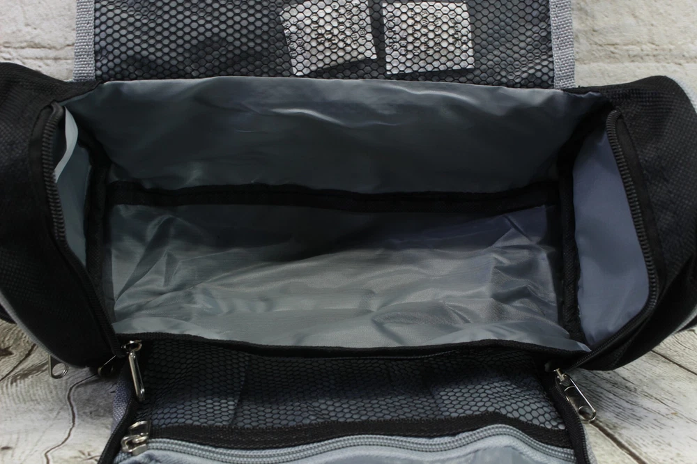 This Bella Russo travel bag is perfect for all your toiletry and makeup needs. With 6 pockets and a convenient hook, it's easy to keep all your items organized and accessible. The bag is made of lightweight canvas polyester and features a solid black pattern that makes it a stylish addition to your travel gear. Measuring 12 inches in size, this toiletry bag is spacious enough to fit all your essentials without being too bulky. Plus, the black and gray color scheme is versatile and gender-neutral. Whether you're traveling for business or pleasure, this Bella Russo travel bag is the ideal companion for all your grooming needs.