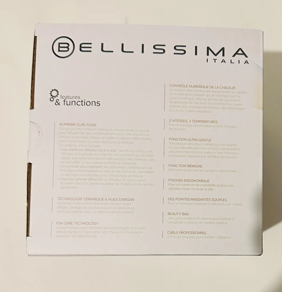 Bellissima Diffon Supreme Diffuser & Curly Hair Dryer - XL Diffuser for Long Waves, Curls, Coils - Cool Button - Anti-Frizz Technology. Note: The box has been opened and box shows minor storage wear (see photos), but the item is unused/new and in excellent condition in its original packaging. Please check out my other listings, I list new items daily. Thank you!