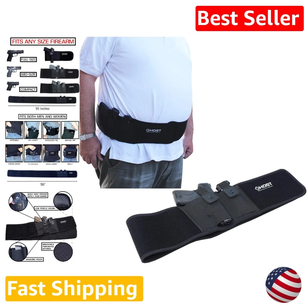 Belly Band Holster for Concealed Carry - Fits 40" to 54" Waist - Right Handed ‹ › ‹ › ‹ › ‹ › ‹ › ‹ › ‹ › ‹ › Belly Band Holster for Concealed Carry -Fits 40" to 54" Waist -Right Handed Features: Safe, quick, & easy gun release Placed over the barrel for quicker & easier gun release Incredibly comfortable, ventilated and soft to the touch Fits Glock, M&P Shield, Sig Sauer, Ruger, and more One size fits many, fits a 40" to 54" waist with ease Many carry options, can be worn in various positions Fits any size pistol, surgical grade elastic holster fits small subcompact to full size pistols and revolvers Benefits: Safe and quick gun release for emergencies Comfortable and ventilated for all-day wear Adjustable to fit a wide range of waist sizes Versatile carry options for different preferences Fits various sizes of pistols and revolvers Why choose our Belly Band Holster? Looking for a comfortable and versatile concealed carry option? Our Belly Band Holster is the perfect choice. With a safe and quick gun release, adjustable fit for a wide range of waist sizes, and the ability to carry in multiple positions, this holster is perfect for everyday carry. Plus, it fits a variety of pistol sizes, making it a versatile option for any gun owner. Don't compromise on comfort or safety - choose our Belly Band Holster for your concealed carry needs. Shipping Free & Fast Shipping - We offer free shipping to most of the USA with a normal delivery time of 3-7 days. However, due to the current situation, additional delivery time (up to 3 weeks) may be required for some items. Alternative Carriers - We may use alternative carriers (e.g. USPS, FedEx, UPS, etc.) to ensure your package arrives safely and on time. Due to the use of multiple carriers, we are unable to provide a tracking number automatically. Handling Time - Orders are processed and shipped within 1-2 business days of receiving cleared payment. Shipping Restrictions - Shipping to Alaska, Hawaii, Puerto Rico, Guam, and other US territories may incur shipping charges or delivery restrictions. Please contact us before ordering, or your order can be refunded/cancelled. State Restrictions - There may be restrictions based on your state of purchase. For example, certain items may not be shipped to California due to state regulations. Contact for Tracking Updates - If you require tracking updates or have any concerns about the delivery of your order, please feel free to contact us, and we will be happy to assist you. Return 30-Day Hassle-Free Returns - We want you to be completely satisfied with your purchase. If you are not, you can return the item within 30 days of receiving it for a full refund or exchange. Easy Return Process - To start a return, simply contact us and we will provide you with a prepaid return shipping label and detailed instructions. Restocking Fee - There are no restocking fees for returns. However, the buyer is responsible for return shipping costs if the return is not due to a seller's error. Refund Processing Time - Refunds will be processed within 5 business days of receiving the returned item in its original condition. Payment We accept all major credit cards, PayPal, and Apple Pay for your convenience. Your payment information is secure and encrypted to ensure a safe and seamless transaction. Please complete your payment within 3 days of purchase to avoid any delays in shipping. Feedback Your feedback is extremely important to us. We strive to provide the best products and customer service possible. If you are satisfied with your purchase, please take a moment to leave us a positive review. If you have any concerns or issues with your order, please contact us before leaving negative feedback. We are committed to resolving any problems and ensuring your satisfaction. Contact Us If you have any questions or concerns, please feel free to reach out to our customer support team. You can contact us through the eBay messaging system. We are available Monday to Friday, 9:00 am to 5:00 pm EST, and we will do our best to respond to your inquiry within 24 hours. Thank you for supporting our small family business!