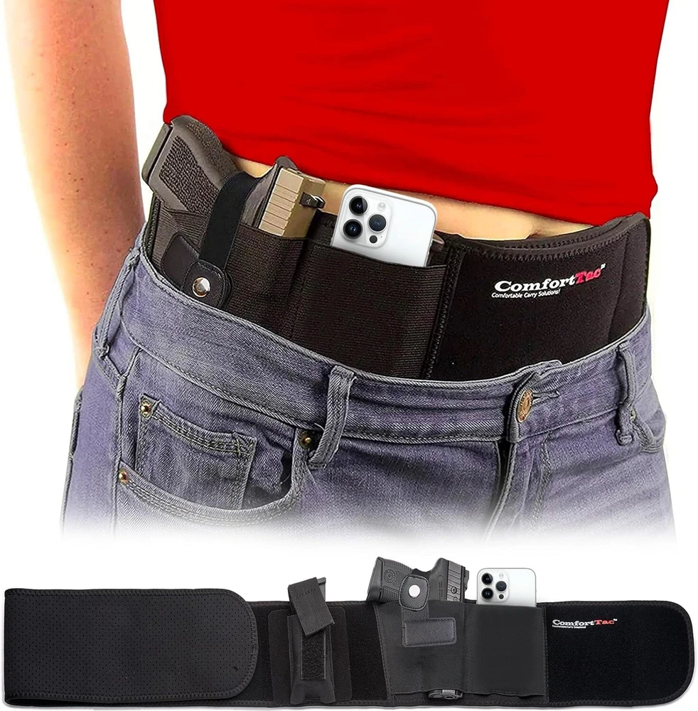 Belly Band Holster for Men and Women - Gun Holster by , Fits Smith and Wesson, Shield, Glock 19, 17, 42, 43, P238, Ruger LCP, and Similar Guns for Most Pistols and Revolvers Our belly band holster is available in right- and left-hand draw; designed for firearms of various sizes, including subcompact, compact, and full-size pistols and revolvers From wearing it at the appendix or hip, to sporting it outside the pants cross draw or open carry style, you can wear this pistol holster your way Our gun holster for women & men is compatible with Glock 19, 23, 38, 25, 32, 26, 27, 29, 30, 39, 28, 33, 42, 43, 36, Smith and Wesson, Bodyguard, M&P Shield, Sig Sauer, Ruger, Kahr, Beretta, Springfield, Taurus PT111, Kimber, Rock Island, Bersa, Kel Tec, Walther, and more The Large, adjustable neoprene waistband on our bellyband holster for men and women fits up to a 44" belly while the XL fits up to a 54" belly These belly band holsters come with a hard plastic trigger guard and metal snap retention strap as a helpful safety feature to keep your gear secure