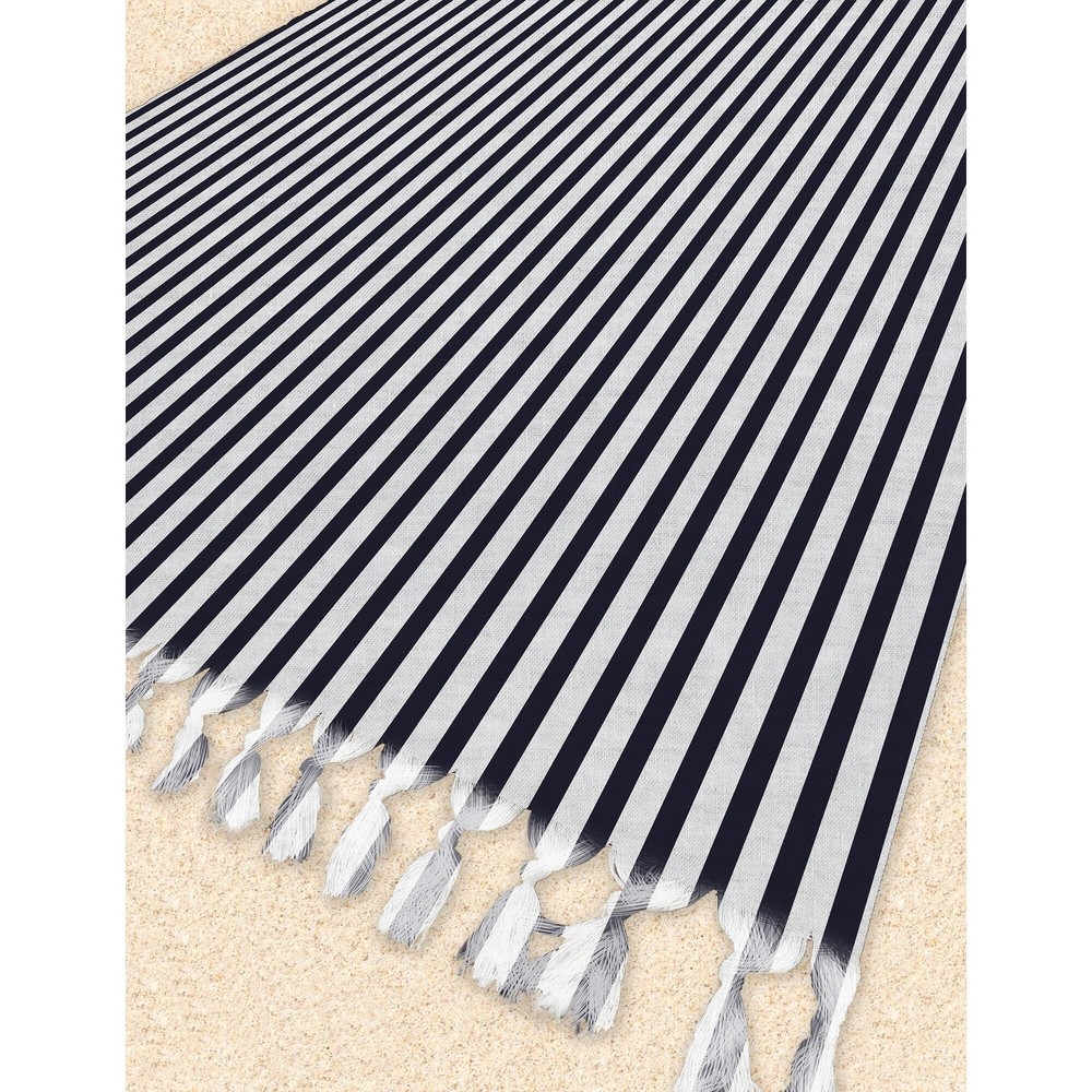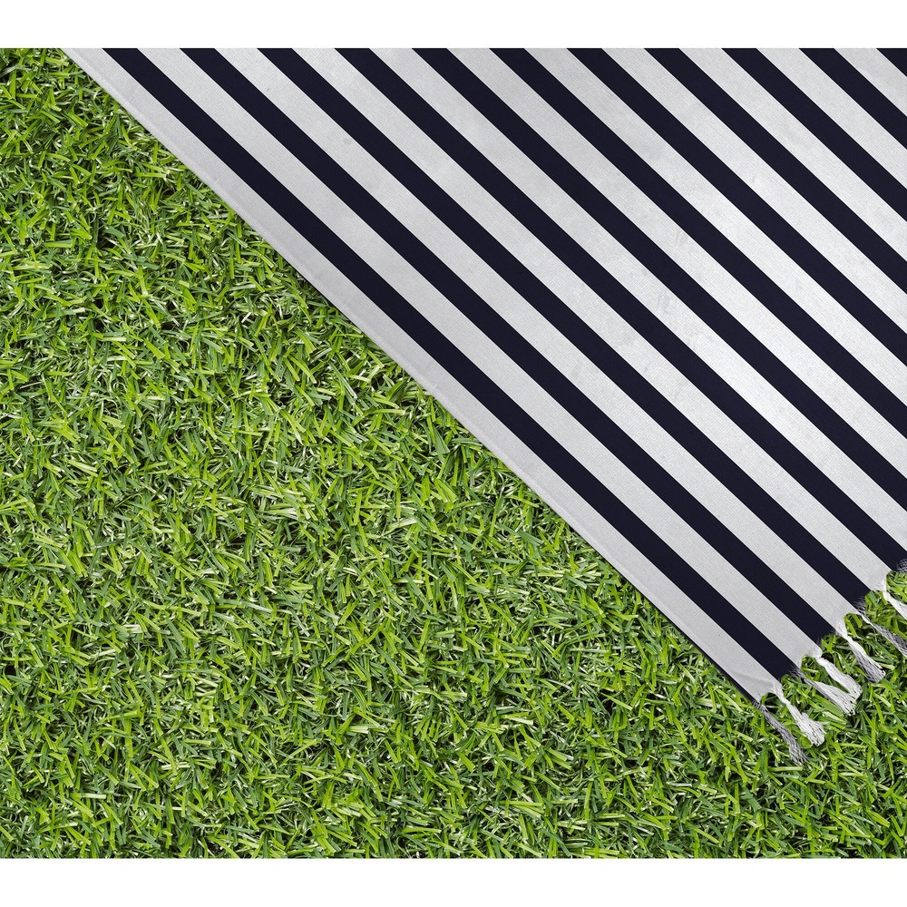 Our beach blanket with tasselss are not just for beach goers, don't let the name fool you! Designed for the beach because the fabric is sand resistant and multi-functional for any outdoor gathering like picnics and sporting events. Our artisan designed blankets are ideal for seating or to use as a fashionable cover up. Free Shipping Over $49.99* Details BELMONT STRIPE NAVY Beach Blanket with Tassels By Marina Gutierrez - 38 x 80 Product Description: Our beach blanket with tasselss are not just for beach goers, don't let the name fool you! Designed for the beach because the fabric is sand resistant and multi-functional for any outdoor gathering like picnics and sporting events. Our artisan designed blankets are ideal for seating or to use as a fashionable cover up.