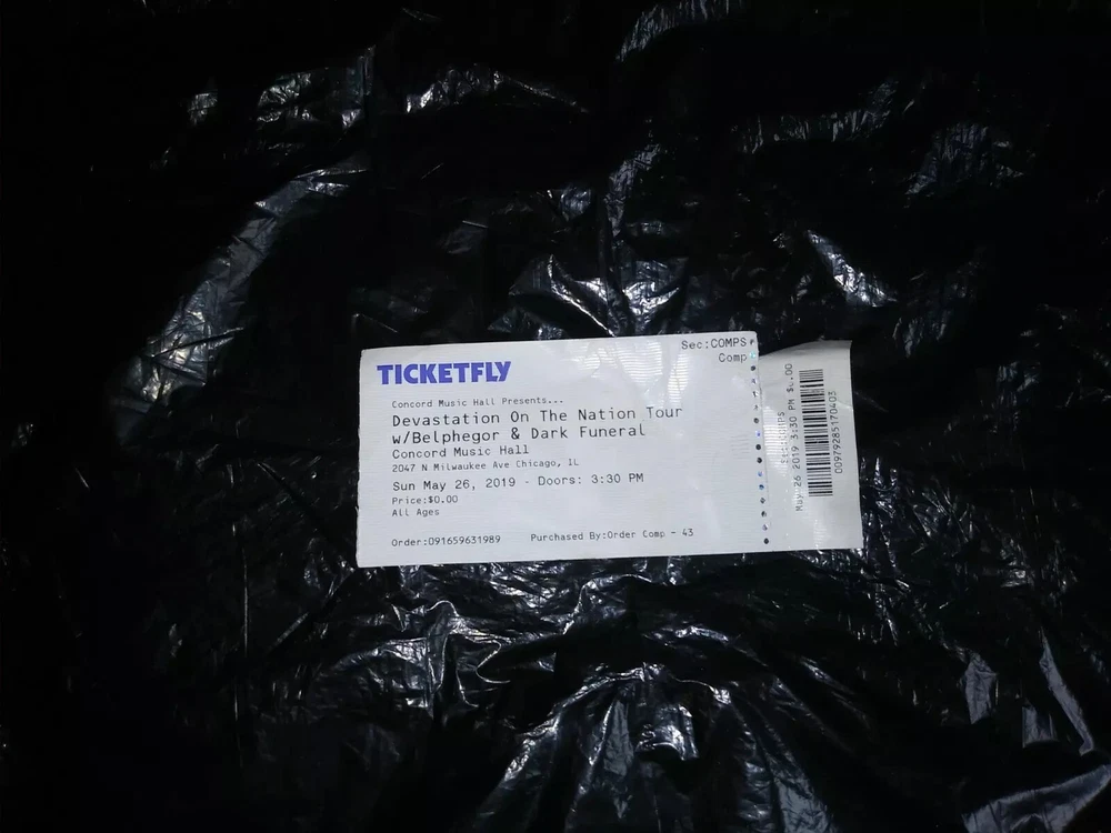 Belphegor Dark Funeral Incantation + Chicago 5/26/19 2019 Concert Ticket