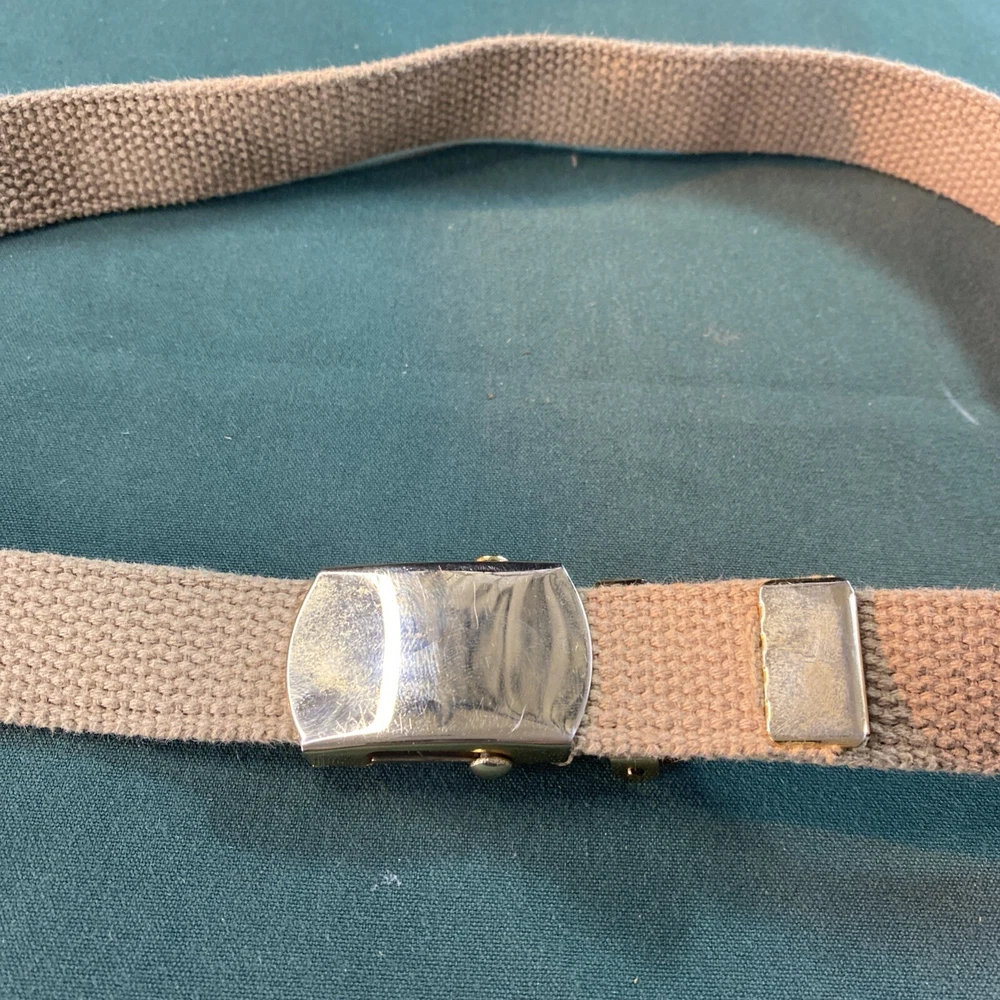 This belt is perfect for anyone looking for a vintage, military-style belt. The brown color and solid pattern make it a versatile addition to any outfit. The buckle is adjustable, allowing for a comfortable fit for all waist sizes. The belt is 1.25 inches wide and features both a braided and woven design, making it a unique piece. It is perfect for unisex adults and would make a great addition to any 80s-themed costume. This belt is not handmade and is not personalized.