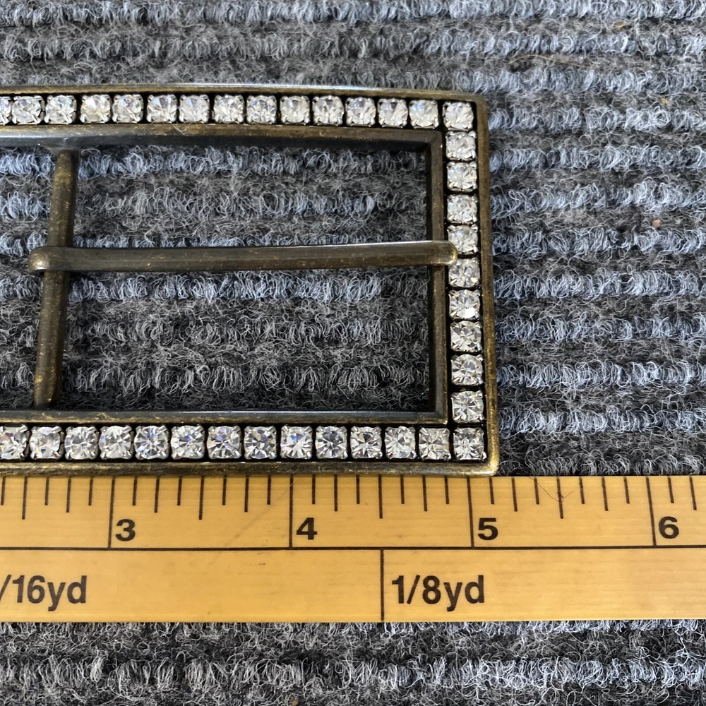 Belt Buckle Women’s Dark Gold Tone Long Rectangle Rhinestones