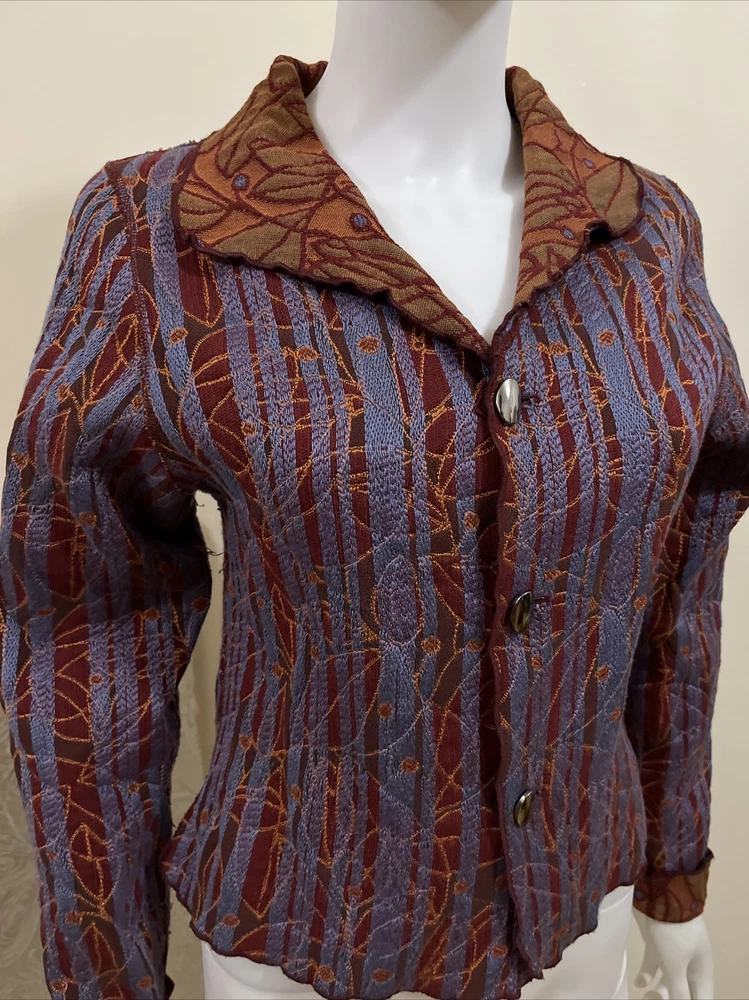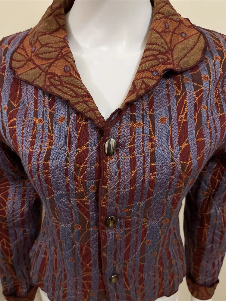Item Details: Beluva San Francisco Jacket Front Buttons Textured Fabric Stitch Detail Cotton Lightweight Size: MEDIUM (to ensure fit, please refer to measurements) Shoulder: 14.5" Chest: 36" Sleeve/shoulder seam to sleeve edge: 23" Waist: 33" Hip: 36" Shoulder to Hem: 19.75" Condition: Excellent Condition; No Flaws to Note Condition Rating: 2 Condition Rankings: NWT = Brand New, tags still attached, never used. Mint Condition = Item may have been used, but shows no signs of wear. Excellent Condition: Used, but with minimal signs of wear. Very Good Condition: Used and shows moderate signs of wear, may need repairs, and is sold As Is. Fair Condition: Item is showing significant signs of wear, may need repairs, and is sold As Is. PLEASE NOTE: Most of our items are Pre-Owned or Vintage. Unless otherwise noted, items will not be in new condition. Prior to listing, we carefully inspect each item for flaws, as needed, we will note flaws and include a photo of of flaws. Unless otherwise noted, grossly misrepresented, or incorrect item is sent, buyers agree to buy items AS IS. We do not accept returns. Condition Ratings: 1 = New/Unused Condition; 2 = Pre-Loved/No Flaws to Note; 3 = Pre-Loved/Mild Signs of Wear; 4 = Pre-Loved/Needs Repairs or Shows Significant Wear/Flaws *Measurements are in Inches