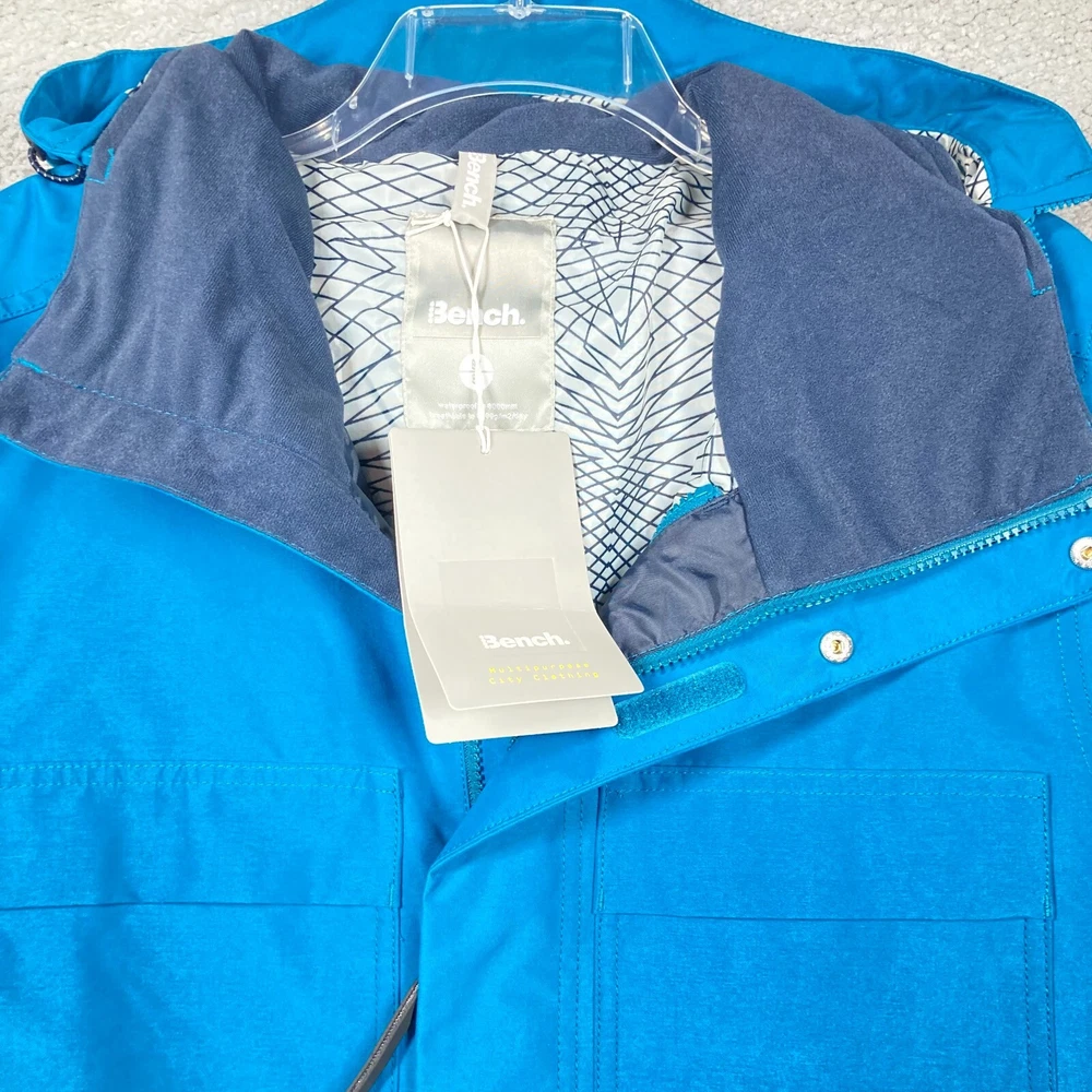 For sale: Bench Jacket Men's Medium Blue Hooded Waterproof Odor Control Tech Full Zip NEW Please check photos carefully for details/measurements. Measure your favorite garment and compare. This item may be wrinkled upon arrival due to packaging. We welcome questions and offers! Thank you for taking time to view and consider this item!