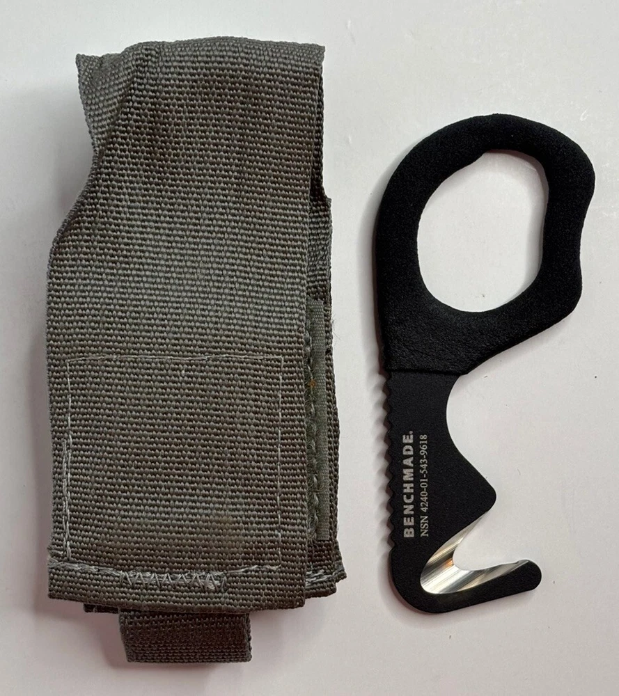 Benchmade 7 Black Rescue Hook / Strap Cutter with Pouch and Molle Clip Please see photos for cosmetic condition