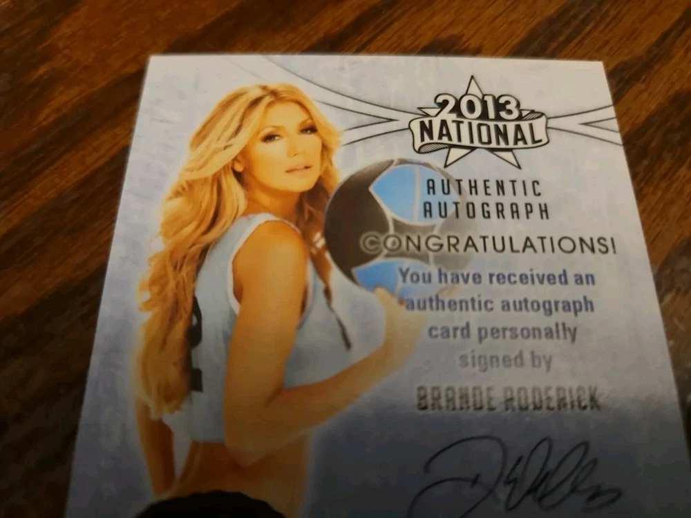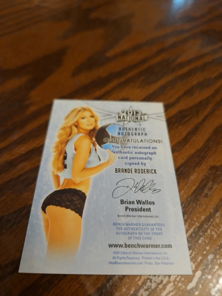 Benchwarmer 2013 Brande Roderick National Autograph Gold Foil Card Auto Playboy Brande has nurtured multiple successful careers as a writer, producer, author, TV and Film actress and businesswoman. Brande joined the #1 syndicated hit series "Baywatch" in the starring role as Leigh Dyer opposite Jason Momoa. Brande's film roles have included "The Nanny Diaries", starring Scarlett Johansson and Laura Linney and "Starsky & Hutch" starring opposite Ben Stiller and Owen Wilson. Her ventures into the Horror/Thriller genre include her co-starring role in Dimension Film's "Dracula II: Ascension" and Snoop Dog's "Hood of Horror". With Brande's popularity and success, Reality TV invited her on NBC's "The Celebrity Apprentice", where Brande shined making it all the way to the end. One of the highest rated seasons of the franchise, Brande was among the elite few Celebrities invited to return on "Celebrity Apprentice All-Stars!" What Brande is less known for, yet she is just as proud, is of her work as a producer for film and television. Starting her production company in 2000, Brande has seen success under her guidance and vision. Recent ventures include Feature Films "Ace and the Christmas Miracle", "Twisted Vines", "Project Legion" and her newest feature film "Wineville", currently in production. Please, look at all the pictures. Please check out my other eBay accounts... https://www.ebay.com/usr/kimmyrael https://www.ebay.com/usr/matlac99 https://www.ebay.com/usr/lacr6837 https://www.ebay.com/usr/malac9440 https://www.ebay.com/usr/lacr_3567 https://www.ebay.com/usr/lacroki8 https://www.ebay.com/usr/lacroki9 Shipping only to the continental US unless you contact me first. Will combine shipping!!!