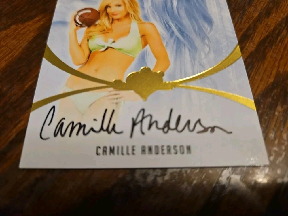 Benchwarmer 2013 Camille Anderson National Autograph Gold Foil Card Auto Playboy Camille Anderson, remember that name. She's already broken into the mainstream world of ultra-popular magazines such as the cover of Stuff, Loaded (UK top 100 girls for 2006,) FHM, Maxim, Marie Claire, Razor, American Health & Fitness, Men's Edge, OnFitness, Steppin' Out, Femme Fatale and Ralph (Top 200 Women in the World 2007.) In her biggest role yet, Anderson can be seen in Wedding Crashers, with Vince Vaughn and Owen Wilson. The highly anticipated blockbuster was the #1 comedy across the globe. And if you're a fan of Las Vegas on NBC, stay tuned! Her character is always returning for more episodes! She recently played Josh Duhamel's love interest and then tried to poison Tom Sellick's character! Camille loves comedy and it shows. You can catch her on HBO's Sketch Pad, cracking jokes and acting in all sorts of zany skits ala SNL. If you tune your TV to Mark Cuban's new channel HD Net, you'll see Camille sky-diving in Australia and bungee jumping in New Zealand. She's the new host and of "Get Out," an adventure travel show which takes her to exotic destinations around the world. Anderson was raised in Dallas, Texas where she thrived as an adolescent. After graduating from the University of Texas at Austin with a dual degree in broadcast journalism and acting, Camille already had "Dateline Associate Producer" under her belt. And Camille is on the move. She has bungee jumped in exotic locations such as Africa, New Zealand and Australia. When she's not on an adventure, her hobbies include cooking, hiking, snow skiing, and water skiing. In fact, she dreams of one day hosting her own cooking show! Please, look at all the pictures. Please check out my other eBay accounts... https://www.ebay.com/usr/kimmyrael https://www.ebay.com/usr/matlac99 https://www.ebay.com/usr/lacr6837 https://www.ebay.com/usr/malac9440 https://www.ebay.com/usr/lacr_3567 https://www.ebay.com/usr/lacroki8 https://www.ebay.com/usr/lacroki9 Shipping only to the continental US unless you contact me first. Will combine shipping!!!