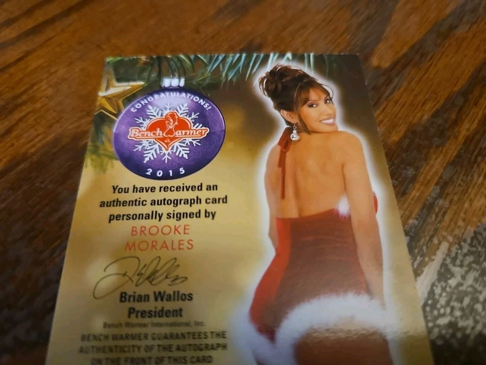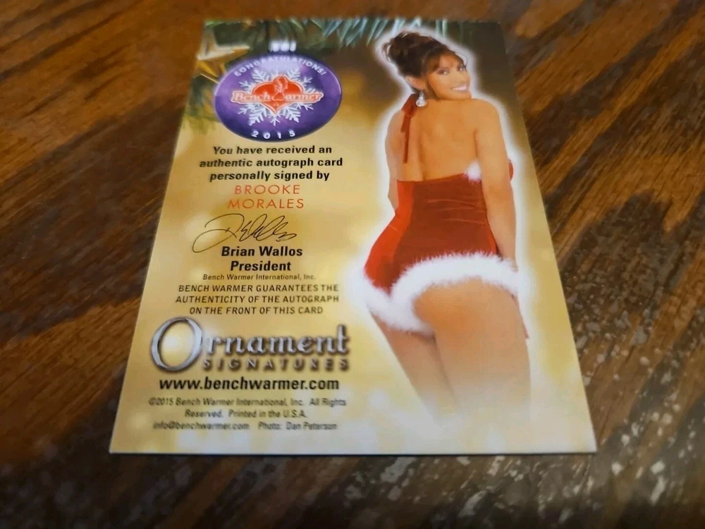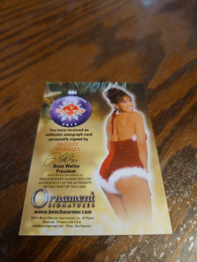 Benchwarmer 2015 Brooke Morales Happy Holidays Ornament Signatures Autograph Card Playboy Playmate Brooke Morales was born on March 23, 1965 in Westwood, California, USA. She is an actress, known for BASEketball (1998) , Nudity Required (1989) and Feelin' Screwy (1990) . Posed in Playboy and Penthouse. Former NFL Football Los Angeles Raiderette Cheerleader. Past Miss Hawaiian Tropic Pageant Winner. Did a stint as an adult model early in her career. Please, look at all the pictures. Please check out my other eBay accounts... https://www.ebay.com/usr/kimmyrael https://www.ebay.com/usr/matlac99 https://www.ebay.com/usr/lacr6837 https://www.ebay.com/usr/malac9440 https://www.ebay.com/usr/lacr_3567 https://www.ebay.com/usr/lacroki8 https://www.ebay.com/usr/lacroki9 Shipping only to the continental US unless you contact me first. Will combine shipping!!!