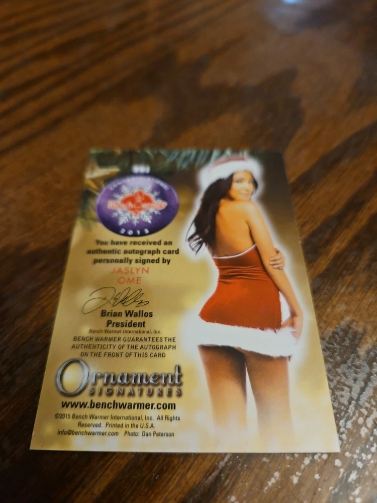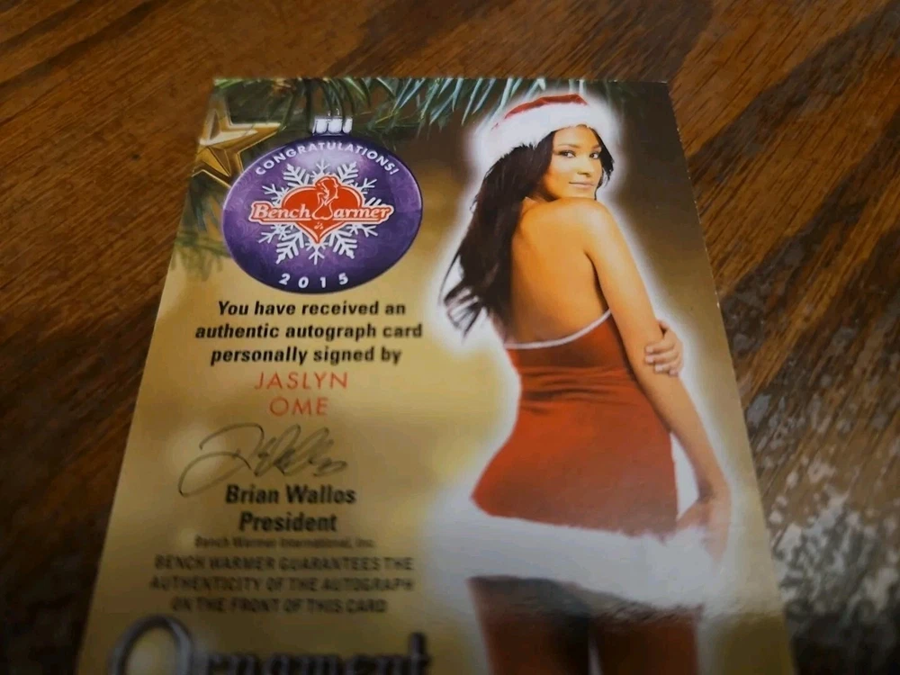 Benchwarmer 2015 Jaslyn Ome Happy Holidays Ornament Signatures Autograph Card Jaslyn Ome was born on July 21, 1991 in Hayward, California, USA. She is an actress, known for 7 Deadly Sins (2019) . Playboy Magazine (US) Playmate of the Month for April 2013. She is married to UFC legend, Urijah Faber. Please, look at all the pictures. Please check out my other eBay accounts... https://www.ebay.com/usr/kimmyrael https://www.ebay.com/usr/matlac99 https://www.ebay.com/usr/lacr6837 https://www.ebay.com/usr/malac9440 https://www.ebay.com/usr/lacr_3567 https://www.ebay.com/usr/lacroki8 https://www.ebay.com/usr/lacroki9 Shipping only to the continental US unless you contact me first. Will combine shipping!!!