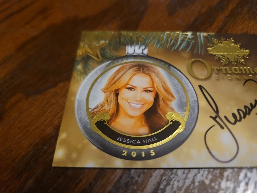 Benchwarmer 2015 Jessica Hall Happy Holidays Ornament Signatures Autograph Card Playboy In 2003, Hall hosted the MTV reality series Burned . Later, in 2007 and 2008 Hall appeared in episodes of Deal or No Deal as a briefcase model and Get Out! , a travel/adventure TV show on HDNet. From October 2009 to January 2010, Hall served as Field Correspondent in the television series That Morning Show on E! . As of October 2009, Hall is co-hosting the new Playboy Radio show The Morning After . Jessica currently serves as the celebrity guest correspondent for TV Guide Channel's "Hollywood 411". Jessica is currently the host of Playboy's Happy Hour on Sirius/XM 102. Please, look at all the pictures. Please check out my other eBay accounts... https://www.ebay.com/usr/kimmyrael https://www.ebay.com/usr/matlac99 https://www.ebay.com/usr/lacr6837 https://www.ebay.com/usr/malac9440 https://www.ebay.com/usr/lacr_3567 https://www.ebay.com/usr/lacroki8 https://www.ebay.com/usr/lacroki9 Shipping only to the continental US unless you contact me first. Will combine shipping!!!