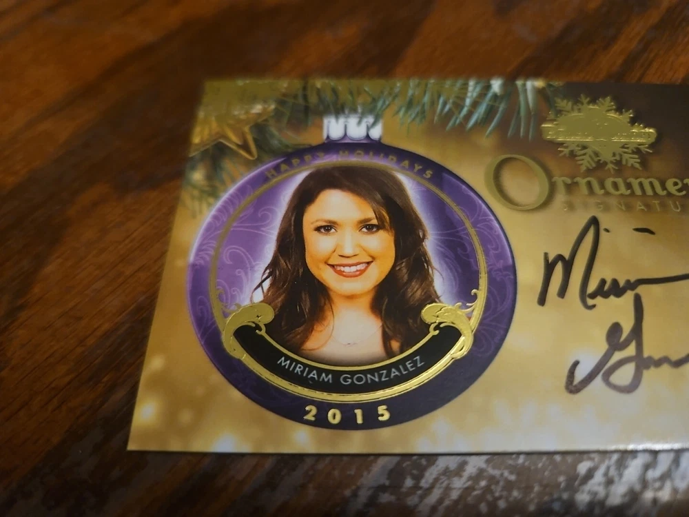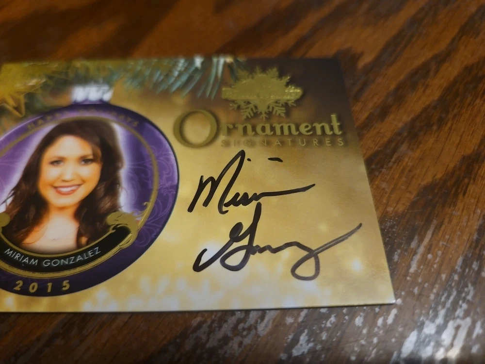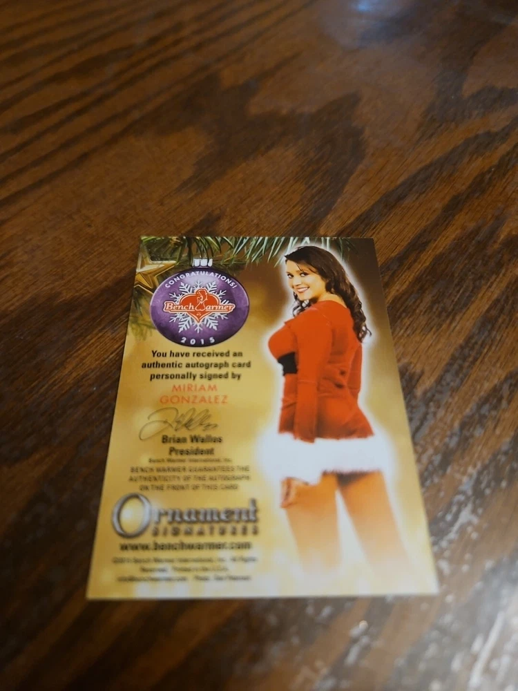 Benchwarmer 2015 Miriam Gonzalez Happy Holidays Ornament Signatures Autograph Card Playboy Playmate This is currently the only one on eBay. Lovely, busty, and shapely brunette stunner Miriam Gonzalez was born on July 8, 1977 in Queens, New York City. She's a Roman Catholic of Puerto Rican descent. Gonzalez moved to Florida at age eleven after her parents got divorced. She not only was a cheerleader and acted in theater productions in high school, but also worked as a waitress at Hooters. Miriam was the Playmate of the Month in the March, 2001 issue of "Playboy." Gonzalez subsequently was featured in many "Playboy" videos and posed for a bunch of newsstand special editions. She's appeared as herself on such reality TV shows as "Wild On" and "The Girls Next Door." In addition to "Playboy," Miriam has also modeled for the websites Pin Up Glam and Pin Up Files. She has small roles in the movies "Because I'm Single ..." and "Babysitter Wanted." Gonzalez was the co-host of Playboy Radio's "The Playmate Hour" on Sirius Satellite Radio from 2005 to 2006. Please, look at all the pictures. Please check out my other eBay accounts... https://www.ebay.com/usr/kimmyrael https://www.ebay.com/usr/matlac99 https://www.ebay.com/usr/lacr6837 https://www.ebay.com/usr/malac9440 https://www.ebay.com/usr/lacr_3567 https://www.ebay.com/usr/lacroki8 https://www.ebay.com/usr/lacroki9 Shipping only to the continental US unless you contact me first. Will combine shipping!!!