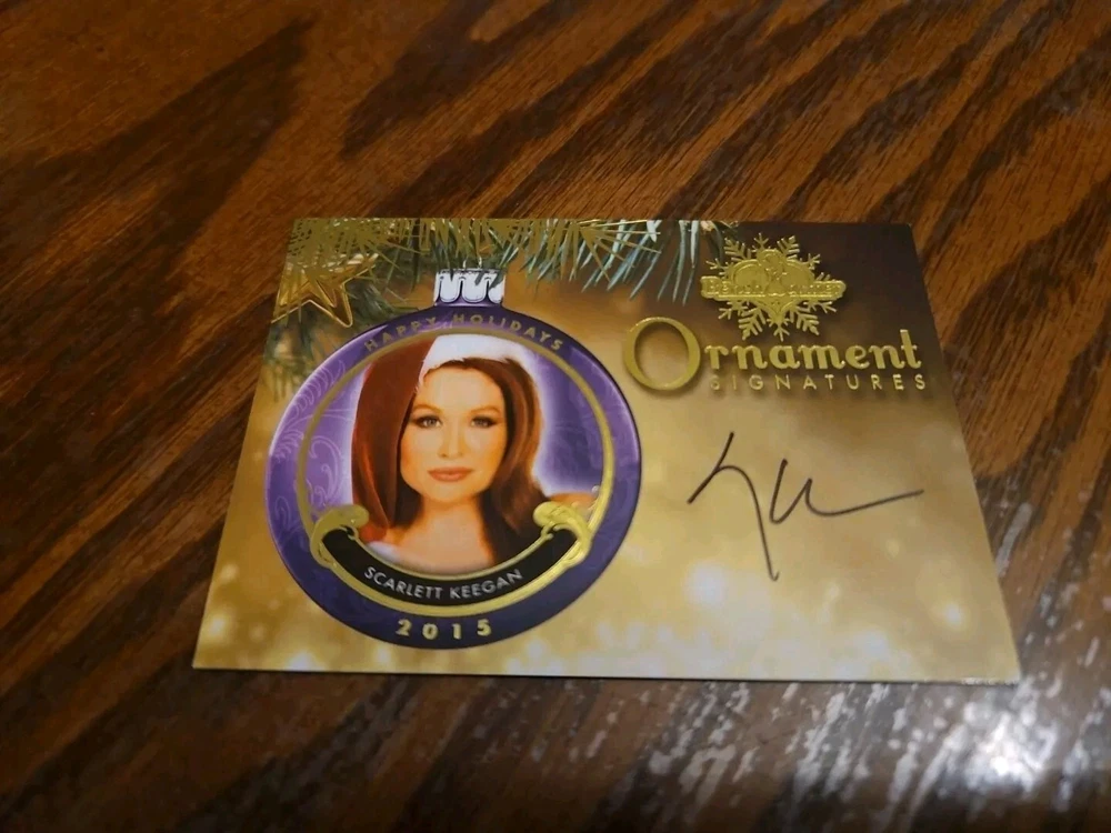 Benchwarmer 2015 Scarlett Keegan Happy Holidays Ornament Signatures Autograph Card Playboy Playmate Slim, sexy, and ravishing curly-haired redhead beauty Scarlett Keegan was born on May 18, 1984 in Westlake Village, California. She's of Irish descent. Scarlett decided at age three that she wanted to be a model and an actress; she started modeling and acting in various TV commercials and print ads when she was a child. In 2003 a friend referred Keegan to "Playboy" so she could try out for the 50th Anniversary Playmate Hunt. After making her debut in a pictorial in the December, 2003 issue of "Playboy," Scarlett was chosen to be the Playmate of the Month in the September, 2004 issue of the famous men's magazine. Keegan subsequently appeared in a couple of "Playboy" videos. In 2005 Keegan and her fellow Playmates Destiny Davis and Jennifer Walcott were given keys to Las Vegas, Nevada by Mayor Oscar Goodman in appreciation for posing for a swimwear calendar promoting the city. She has studied acting at the Gaiety School in Ireland. Moreover, Scarlett appears in the music video for "Beverly Hills" by Weezer and has an uncredited bit role in the comedy "Walk Hard: The Dewey Cox Story." Please, look at all the pictures. Please check out my other eBay accounts... https://www.ebay.com/usr/kimmyrael https://www.ebay.com/usr/matlac99 https://www.ebay.com/usr/lacr6837 https://www.ebay.com/usr/malac9440 https://www.ebay.com/usr/lacr_3567 https://www.ebay.com/usr/lacroki8 https://www.ebay.com/usr/lacroki9 Shipping only to the continental US unless you contact me first. Will combine shipping!!!