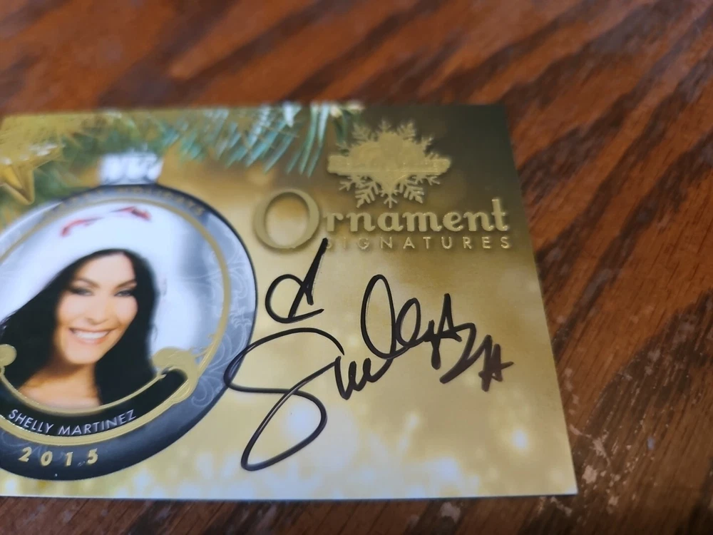 Benchwarmer 2015 Shelly Martinez Happy Holidays Ornament Signatures Autograph Card Women's Wrestler WWE Playboy Mexican-American actress, model and retired professional wrestler and valet who worked from 2000 to 2017. She started in the southern California scene as Desire, winning the EWF (Empire Wrestling Federation) Tag Team Championship with Threat in a tag team battle royal at the EWF's July 19, 2002 event, making her the first and only woman to hold the title. They lost the titles to PHAT (Devon Willis and Eric Matlock) 28 days later. She signed a deal with WWE in 2005 and was assigned to their developmental promotion Ohio Valley Wrestling. In 2006, she was brought up to the main roster as part of the ECW revival as Ariel, the valet for vampire wrestler Kevin Thorn ( Kevin Fertig ). They were heels as part of the stable the New Breed, with CM Punk , Matt Striker ( Matthew Kaye ) and Marquis Cor Von ( Monty Brown ). Martinez was released from her contract on May 18, 2007, over an altercation with Dave Bautista . She had a run in TNA as Salinas of the Latin American Exchange, with Homicide ( Nelson Erazo ) and Hernandez ( Shawn Hernandez ). They feuded with Christy Hemme and her team the Rock N Rave Infection (Jimmy Rave ( James Guffey ) and Lance Rock ( Lance Hoyt )). She left in 2008, after being attacked in the storyline by Jacqueline ( Jacqueline Moore ) as part of the feud between LAX and Beer Money Inc. ( James Storm and Robert Roode ( Bobby Roode )), as she had quit TNA to star in an Italian thriller. She retired in 2017. She has also wrestled under the names Halloween Barbie, Cle-Ho-Patra, Vampira and Siren. She has been billed from both Chino, California and from "The Jewel of the Nile" as Cle-Ho-Patra in the defunct adult-oriented Women's Extreme Wrestling. Please, look at all the pictures. Please check out my other eBay accounts... https://www.ebay.com/usr/kimmyrael https://www.ebay.com/usr/matlac99 https://www.ebay.com/usr/lacr6837 https://www.ebay.com/usr/malac9440 https://www.ebay.com/usr/lacr_3567 https://www.ebay.com/usr/lacroki8 https://www.ebay.com/usr/lacroki9 Shipping only to the continental US unless you contact me first. Will combine shipping!!!
