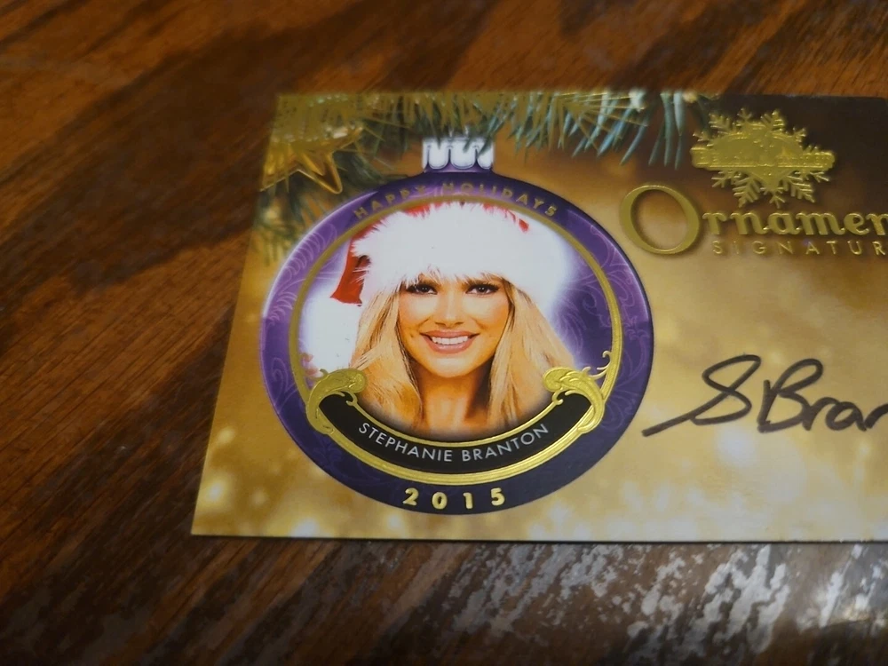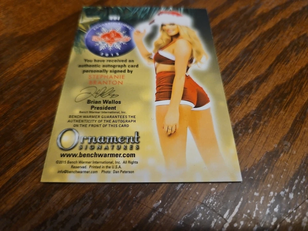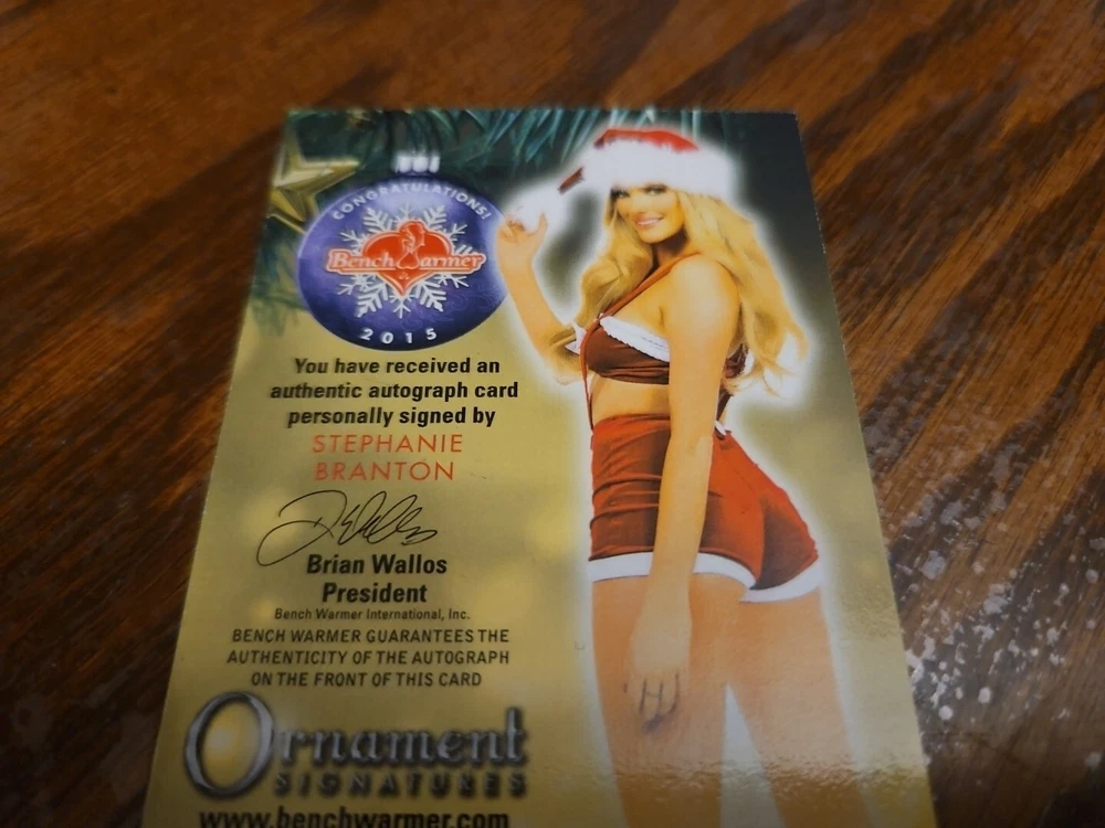 Benchwarmer 2015 Stephanie Branton Happy Holidays Ornament Signatures Autograph Card Playboy Playmate Canadian Playmate Stephanie Branton is Playboy's Miss September 2014. The blonde beauty grew up on the scenic island of Newfoundland. "Some people back home said I couldn't do it," Branton told Playboy. "I just knew inside that if I took a leap of faith and worked hard, I could make this happen. I never gave up." The lack of opportunities for a modeling career in her hometown pushed Branton to make the move to Toronto, where she began quite a career for herself. She modeled for print, shot commercials and appeared in music videos. The future Playmate got her break when she landed a gig at a Playboy Golf event and was approached by casting directors. They asked if she was already a Playmate, and when they found out she wasn't they told her she should pose for photographer Josh Ryan in Los Angeles. Branton jumped on the opportunity. She packed up her life in Canada and made her way to Los Angeles to see what Playboy had in store for her. Branton started off as a Coed for Playboy, shooting several pictorials and videos. She was featured in Playboy's "Northern Star" series with other Canadian Playboy models and Playmates. It didn't take long for Branton to be made Miss September 2014, and she said she couldn't be more excited to join the Playmate family. For her shoot, Playboy took Stephanie down to Louisiana's Nottoway Plantation and Resort. She felt right at home, both in the sultry, sociable South ("I feel like an honorary Southern belle," she says) and in front of the camera. "I don't see myself as a sexpot type in real life," said Miss September, "but I love getting into that character as a model. I love giving hot. Although I can be shy and quiet at times, I am a bit of an exhibitionist. I'm comfortable, as they might say in Louisiana, getting' naked." Please, look at all the pictures. Please check out my other eBay accounts... https://www.ebay.com/usr/kimmyrael https://www.ebay.com/usr/matlac99 https://www.ebay.com/usr/lacr6837 https://www.ebay.com/usr/malac9440 https://www.ebay.com/usr/lacr_3567 https://www.ebay.com/usr/lacroki8 https://www.ebay.com/usr/lacroki9 Shipping only to the continental US unless you contact me first. Will combine shipping!!!