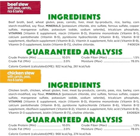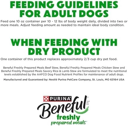 Serve your dog his favorite flavors with a Purina Beneful Prepared Meals Stew wet dog food variety pack. Each delectable recipe features tender, meaty chunks with real beef, lamb or chicken in a delicious dog food gravy. We craft our high-quality dog food with no artificial colors, flavors or preservatives and add 23 essential vitamins and minerals to help support his overall health. Each variety of our dog food with rice offers 100 percent complete and balanced nutrition to support your adult dog's healthy and playful lifestyle. Purina Beneful Prepared Meals wet dog food offers him high-protein recipes that support his strong muscles. For a yummy change of pace, you can also mix the savory stews with his favorite dry kibble to create mouthwatering dog food toppers that inspire him to finish every bite. Use the recloseable dog food tub to store leftovers after mealtime. We proudly produce this gravy dog food variety pack in Purina-owned U.S. facilities.