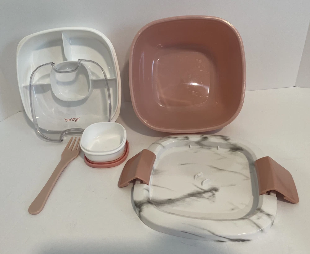 Bentgo Box Adult Lunch Container, 7 Piece Set w/Large Bowl And Compartments Condition is good, see photos for best representation. Thank you for looking and supporting my smal business!