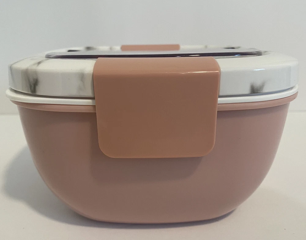 Item Width: 6.8 in Number of Items in Set: 7 Capacity: 52 oz Number of Compartments: 5 Set Includes: Dressing Container, Fork, Lid, Bowl, Compartment Dish Brand: N/A Style: Art Deco Item Height: 3.5 in Color: Pink Features: Dishwasher Safe, Easy Clean, Easy to Clean, Microwaveable, Microwave Safe, Multipurpose, Reusable, Waterproof, With Lid Lid Type: Snap Lid Type: Bento Box Material: Plastic Shape: Square