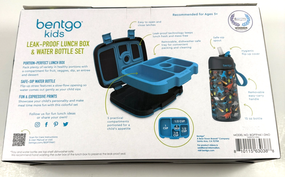This Bentgo Kids lunch set is perfect for little dino lovers! The lunch box and water bottle are both sturdy, leak-proof, and super easy to clean—dishwasher safe is a huge plus. My child loves carrying it, and the bright dinosaur design makes mealtime fun. Great condition, just as described! Highly recommend for busy parents.