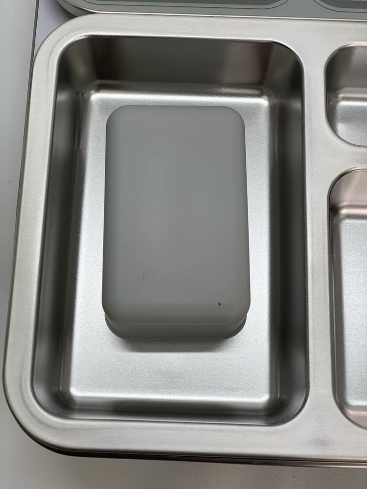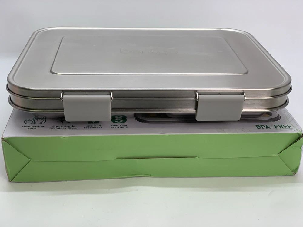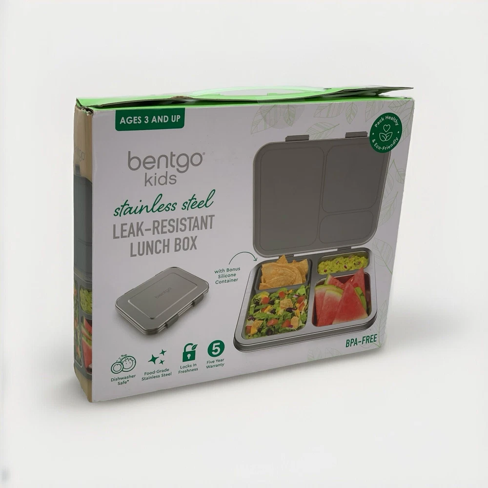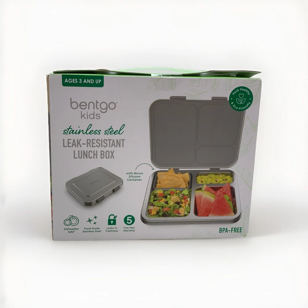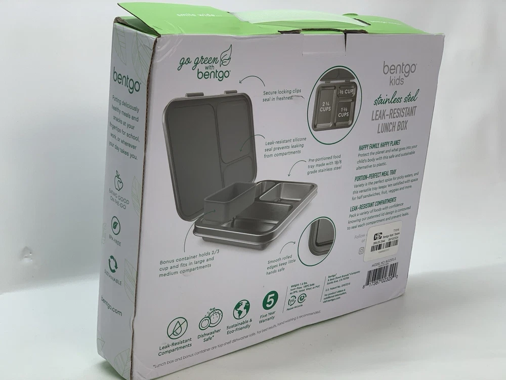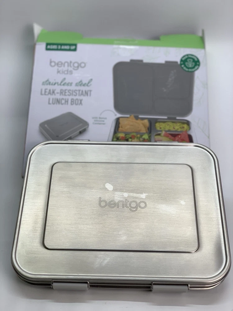Open box condition, no signs of use. Minor cosmetic marks as shown in photos. This Bentgo Kids lunch box is the perfect solution for packing a nutritious meal for your little one. With three compartments, a divided tray, and a capacity of 4+ cups, this rectangular lunch box is designed to keep food fresh and organized. The lid features latches to prevent spills and the box is made of 18/8 stainless steel, which is leak-resistant and BPA-free. The lunch box measures 8.25 inches in height, 10 inches in width, and 1.75 inches in depth and comes in a stylish silver color. It is perfect for children who love to eat on-the-go and is easy to clean. The set includes a divided tray, as well as a removable silicone dish. This lunch box is a great addition to your kitchen storage and organization collection and is perfect for any parent who wants to provide their child with a healthy meal. *"Open Box" and "Used" items are inspected and tested as needed to ensure quality, functionality, and completeness *I take great care to ship securely and accept returns of items in same unused/undamaged condition if you are unsatisfied. (No returns on salvage or “for parts only” orders.) *Free standard shipping will be either USPS Ground Advantage, Priority Mail, or UPS Ground. If payment is received before 12:00pm/noon Eastern Time Monday-Friday, your item will ship that day. Items purchased or paid for after this deadline will ship the next business day. *Please contact me if you want shipping insurance, expedited or other shipping options, etc. Happy to combine shipping on multiple purchases- just contact me before buying. *Please see photos and contact me with any questions.