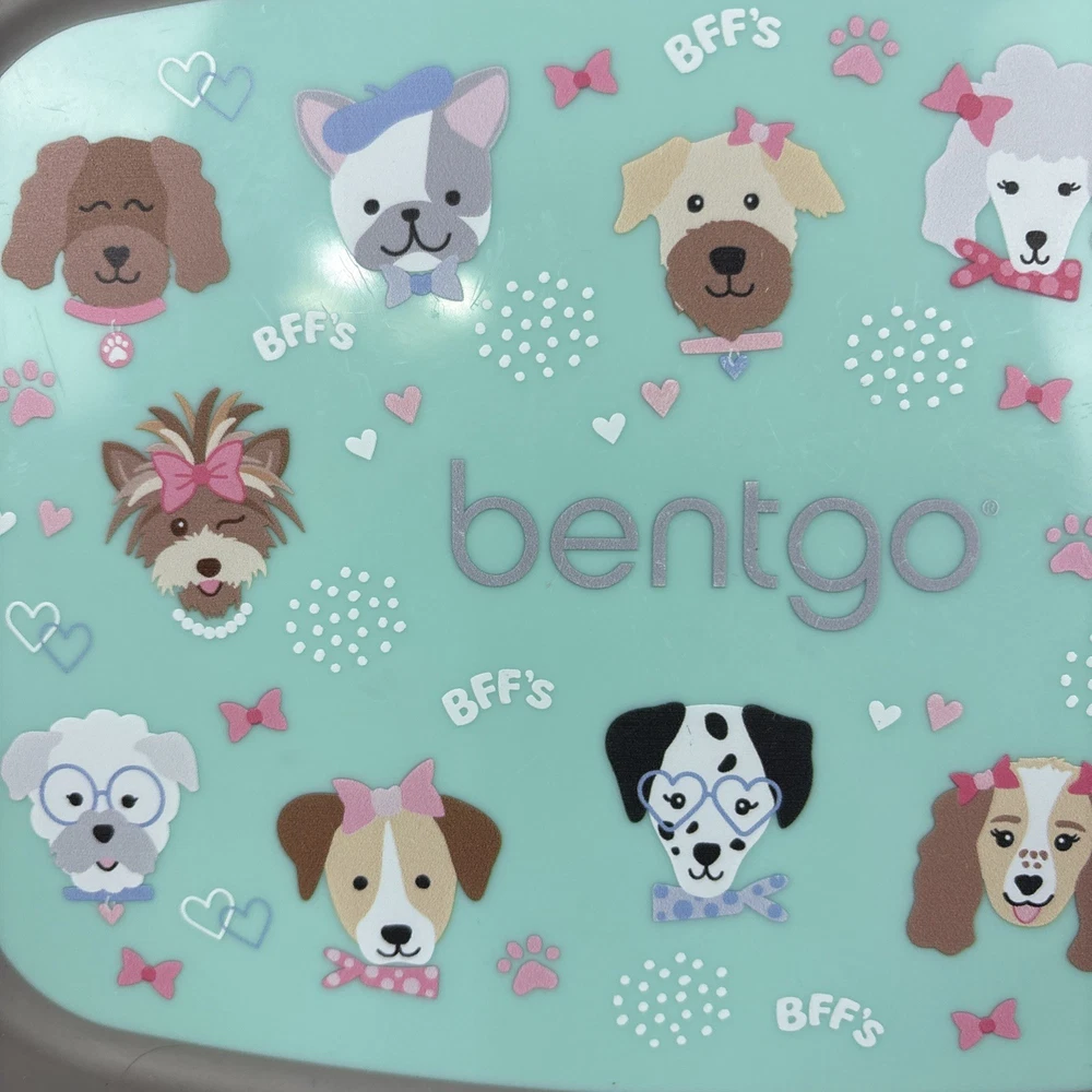 Bentgo Bento Lunch Box Snap Tight Leakproof 5 Compartment Dogs “Puppy Love”. This is in good, preowned condition! It does have some signs of wear, but overall it’s looks great! The seal is tight and the 2 levers work great! Please see photos for a better look. Shipped from a smoke free home.