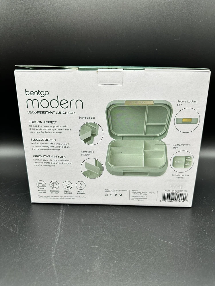 MPN: 85830326 Set Includes: Divided Tray UPC: 817387024242 Type: Lunch Boxes and Bags gtin13: 817387024242 Style: Modern Brand: Bentgo Item Width: Not Available Color: Green Number of Compartments: 4 Item Height: Not Available