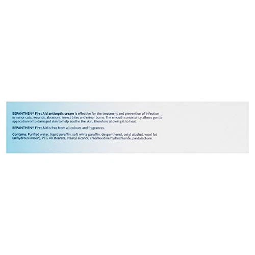 Bepanthen Nappy Care Ointment is more than just a barrier. It works in two ways to protect from the causes of nappy rash and care for your baby’s delicate skin. Clinically proven Bepanthen works by forming a breathable transparent layer, helping protect your baby’s skin from the irritants and rubbing that can cause nappy rash. Bepanthen helps protect the skin under the diaper from irritation, dampness and friction. Helps restore and nourish the skin to be soft, moisturized, designed for baby's delicate skin, especially gentle formula to protect skin from irritation Package:1x100g Bepanthen First Aid Healing Creams 1.Bepanthen First Aid is free from all colours and fragrances 2.helps protect wounds from infection,helps soothe and heal the skin 3.fragrance free and colour free.Indgredients 4.Bepanthen First Aid antiseptic cream is effective for the treatment and prevention of infection in minor cuts, wounds, abrasions, insect bites and minor burns. The smooth consistency allows gentle application onto damaged skin to help soothe the skin, therefore allowing it to heal.