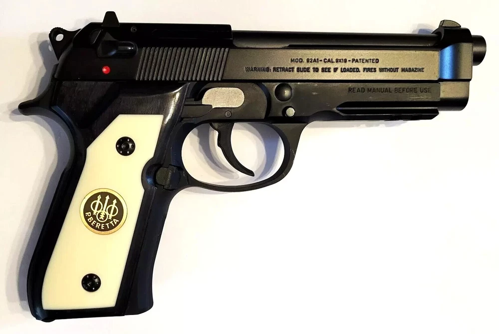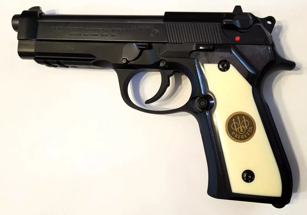Enhance the Appearance and Grip of your Beretta 92F 92FS 92/96 M9 or 92 Pistol with these top-quality Pistol Grips with the Beretta Trident Medallion. These custom made grips are specifically designed for Beretta Pistols and are perfect for hunters and sport shooters. The design provides a comfortable and stable grip, ensuring accurate shots every time. Made from high-quality Hardwood with an Acrylic Polymer Inlay and Metal Trident, these grips are durable and long-lasting. They are easy to install and can be used to customize the look and feel of your pistol. A new set of screws is included. Perfect for both beginners and experienced shooters, these Beretta 92F 92FS 92/96 M9 and 92 pistol grips with the Beretta Trident are a must-have for anyone who wants to upgrade their pistol to a custom look. The gun is NOT Included.
