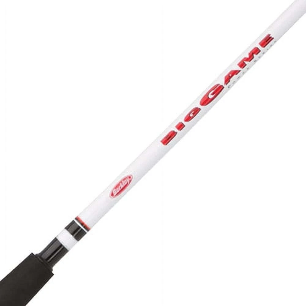 You have a passion for the sport. So do we. All anglers know a successful day out on the water and maximizing your catch requires the right fishing rods. We're here to help with that. The Berkley Big Game rod series is built for big fish. Strong fiberglass matched with durable components allow anglers to catch a wide range of freshwater and saltwater species, without breaking the budget. From catfish to trout, get a rod that helps you land every fish no matter the size. At Berkley, our process gives anglers the tools and confidence to catch more fish. Failing to catch fish is what motivates us to keep fishing, keep studying, and keep figuring out ways to make all our products the best on the market. Because of this commitment we can confidently say - We've done the science. Now you catch the fish. BERKLEY BIG GAME 8’ spinning rod. Moderate Fast action. 12-30LB LINE RATING, MEDIUM HEAVY POWER. Lure rating of 1-4 oz. FIBERGLASS BLANK CONSTRUCTION: The tubular fiberglass blank construction helps you reel in even the toughest fish. Weighing in at 13.2 oz and paired with durable components, it's a sturdy rod that won't break the bank. DURABLE GUIDES: Titanium Oxide guides with titanium oxide inserts give this rod added strength and control when in action, and a smoother cast every time. DEPENDABLE REEL SEAT: Graphite reel seat provides added balance to any sturdy rod, creating a stable and dependable anchor point for the reel. COMFORTABLE ROD HANDLE: Type-A EVA rod handle maximizes comfort to reduce hand strain, so you can extend your days and catch more fish. TWO PIECE FISHING ROD: Designed for increased reactivity that'll help get the job done. THE BIG GAME SERIES has the tensile strength required to help you reel in the big one. The perfect combination of durability and responsiveness.