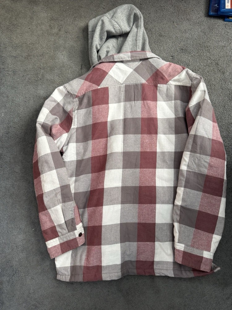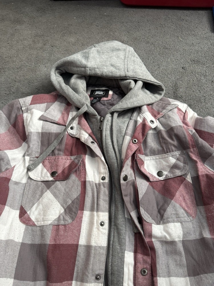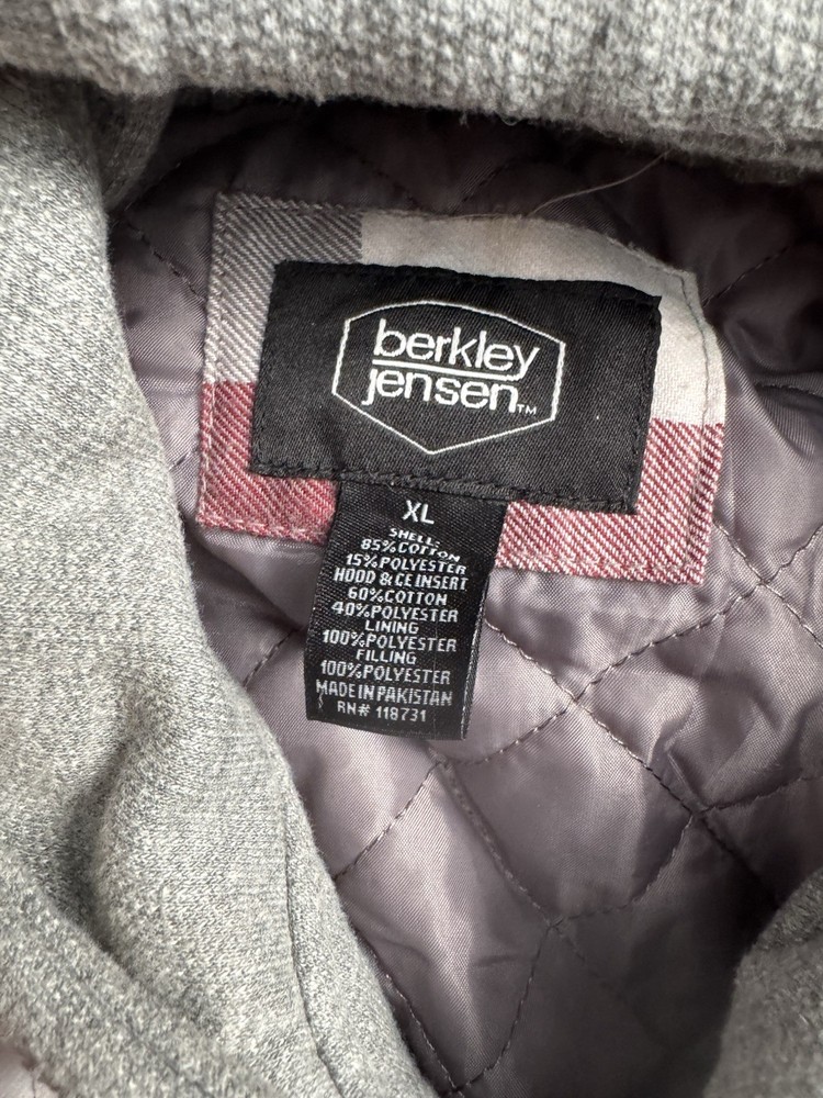 Berkley Jensen Hooded Flannel Jacket Mens XL Quilted Red Plaid. Condition is Pre-owned - Excellent. Shipped with USPS Ground Advantage.