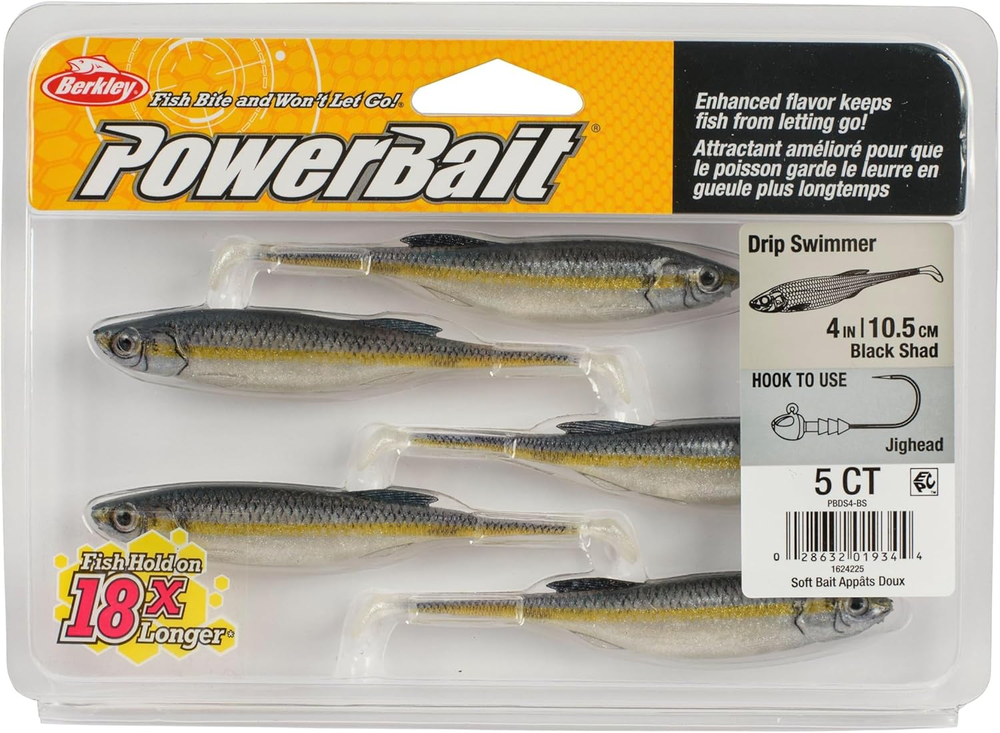 This Berkley PowerBait Drip Swimmer is a game-changer for bass fishing! The lifelike action and irresistible scent make it a must-have in any tackle box. The 4" black shad design mimics real prey perfectly, and the durable plastic holds up against aggressive strikes. Whether you're a beginner or a pro, this soft bait delivers consistent results. The ambidextrous design makes it easy to use, and the realistic swimming action drives bass crazy. Definitely worth adding to your collection—it’s a fish magnet!