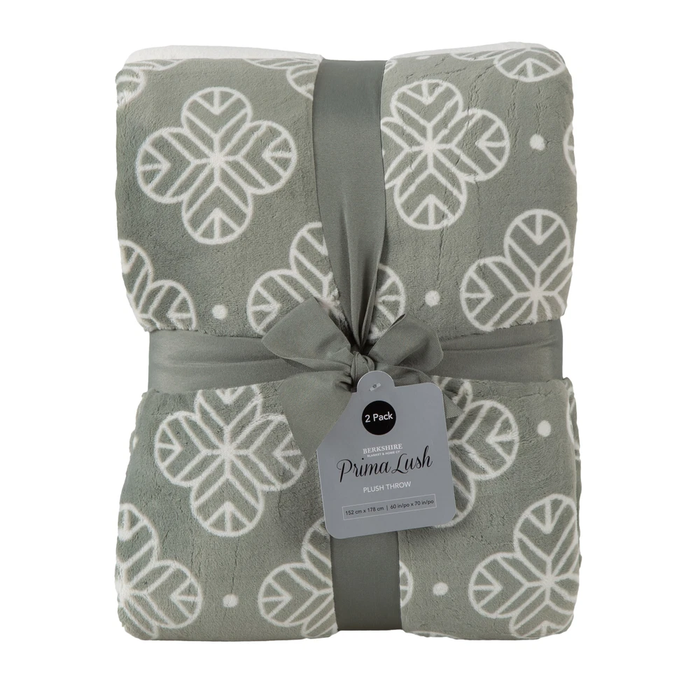 These PrimaLush throw 2 packs from Berkshire Blanket & Home Co., include one printed and one solid throw in coordinating colors to add style and dimension to your space. The luxuriously soft PrimaLush has a velvety sheen that’s super cozy and suitable for every season. Includes: Gray = 1 printed plaid, 1 solid Features: Dense soft plush 1” foldover hem 500 GSM Made in: China Dimensions: 60” x 70” (152cm x 178cm) each Material: 100% Polyester Care Instructions: Machine wash cold separately on gentle cycle Use non-chlorine bleach when needed Tumble dry, no heat Air or line dry Do not iron 2-pack Includes One Printed & One Solid Throw Machine Washable for Easy Care 100% Polyester