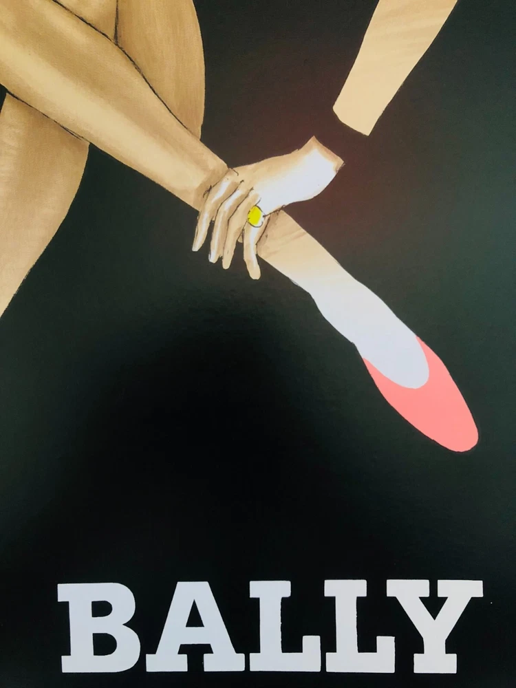 Bernard Villemot, c.a. 1980s - BALLY KICK - Original Vintage Poster on Linen