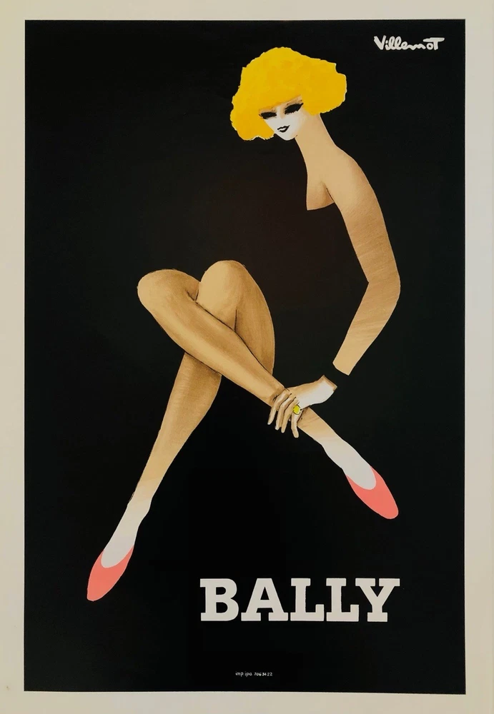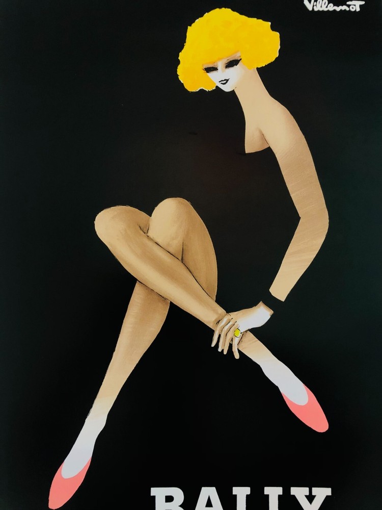 Artist: Bernard Villemot Title: BALLY FEMME BLONDE Original vintage poster printed in offset lithography linen backed on canvas Year: c.a 80s Size: c.a. cm 61,2 x 37,5 - in 24 x 14,8 Size with canvas: c.a. cm 71,2 x 47,5 - in 28 x 18,7 Publisher: marked "imp. ipa. 7063422" bottom center Signed in the printing plate top right right: Villemot Provenance: Private collection, Italy This work is in very good condition overall. Condition A It will be shipped rolled in a strong sturdy tube with DHL, UPS, TNT or FedEx with full insurance coverage and professional packaging