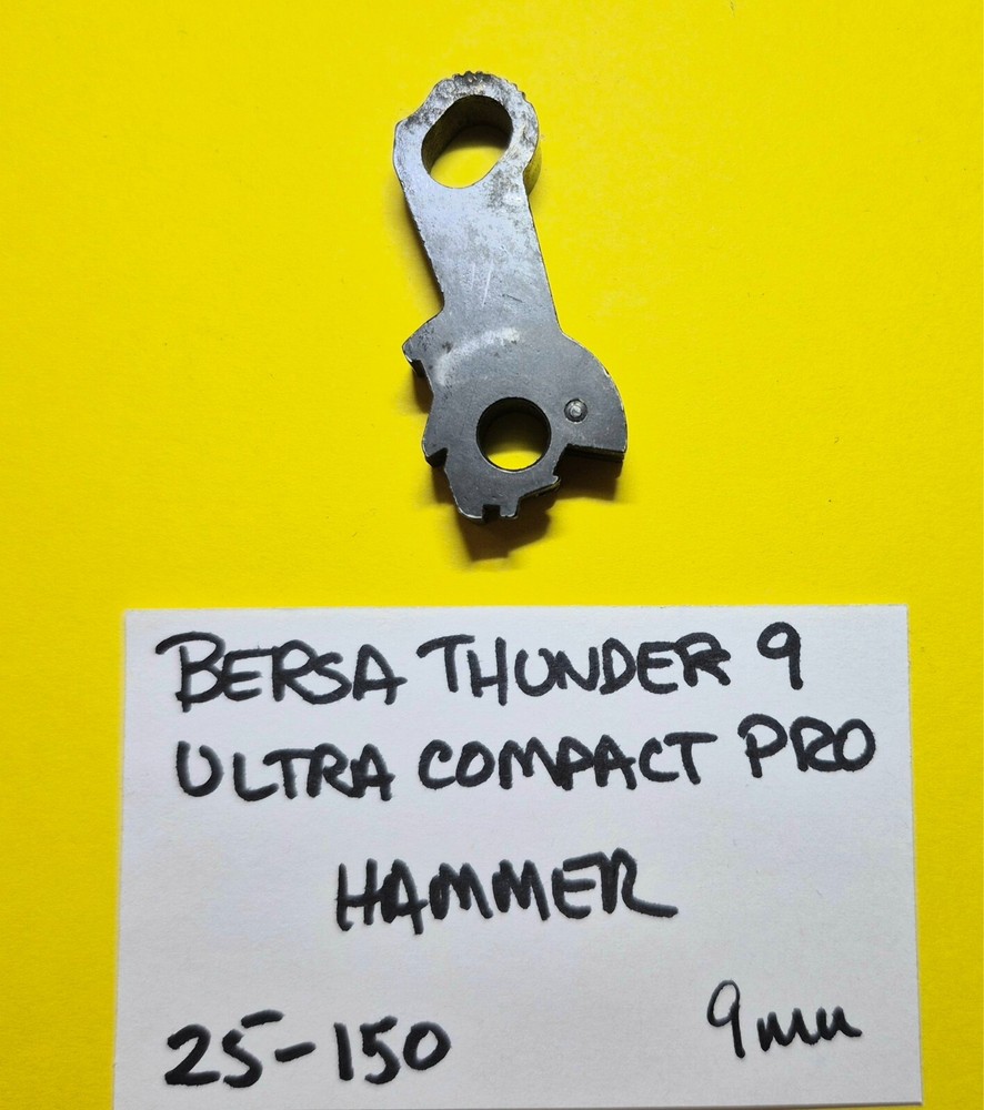 Material:SteelColor:BlackFor Gun Type:HandgunFor Gun Make:BersaGauge/Caliber:9 mm LugerCountry/Region of Manufacture:Argentinagtin13:DOES NOT APPLYMPN:Does Not ApplyBrand:BersaUPC:DOES NOT APPLYFeatures:FACTORYSeller Notes:“Nice Bersa Thunder 9 Ultra Compact Pro 9mm Hammer #25-150”Model:Thunder 9Type:Hammer