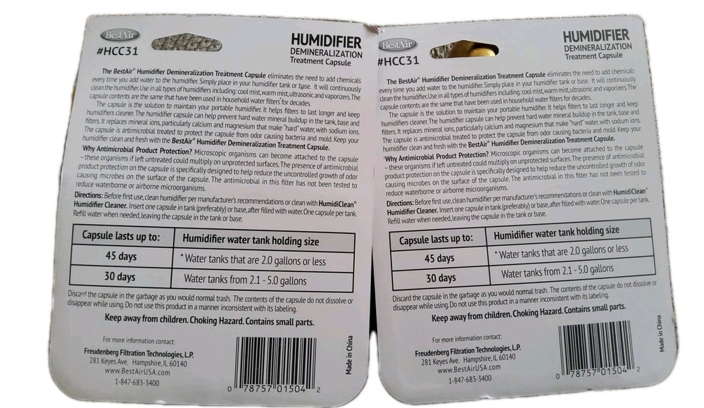 Best Air Humidifier Cleaner Capsule HCC31-PDQ-4 BestAir HCC31-PDQ-4. Universal Compatible Demineralization Treatment Capsule for all types of Humidifiers.