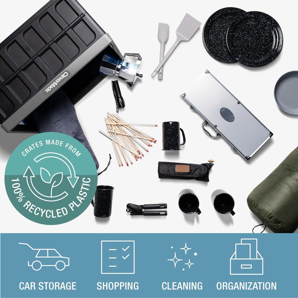 VERSATILE- Multi-functional collapsible storage bins with lids, suitable for home, office, dorm, RV, or garage use, ideal for organizing sporting equipment, tools, or food items, and perfect for efficient moving and storage solutions. LIGHTWEIGHT- These collapsible storage containers store a large amount of items while remaining lightweight and convenient to use, thanks to their ergonomic side-grip handles. You can securely place the lid on either the bottom or top of the crate COLLAPSIBLE & STACKABLE: To collapse, simply push from the bottom of the short sides to make the bins quickly fold flat; crates can be vertically stacked up to 3 high when open or closed with their interlocking nesting system design ECO FRIENDLY - Heavy duty plastic pop-up bins made from 37% recycled plastic and 63% polypropylene regrind offer a great environmentally friendly alternative to flimsy plastic bins, cheap reusable totes and unstable cardboard boxes DIMENSIONS: Measuring 21.12"L x 14.12"W x 11.5"H, it collapses down to 2.5" in height and holds 46 liters by volume, with a maximum load capacity of 75 pounds