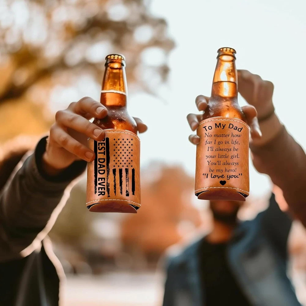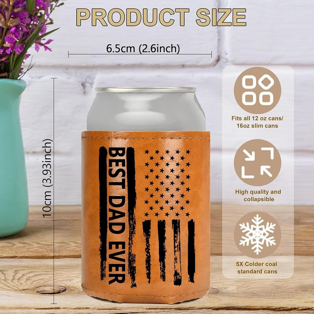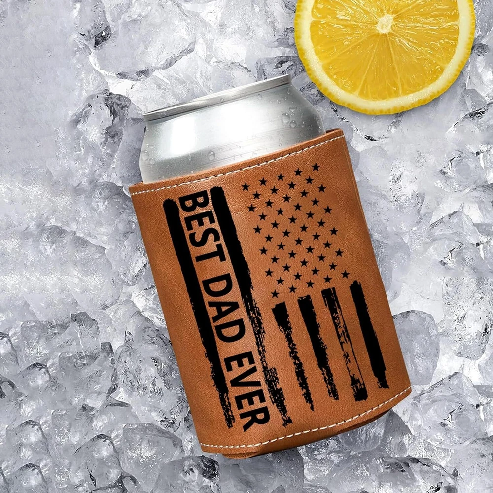 Best Dad Ever 12Oz Leather Beer Can Holder - Father's Day Birthday Gift From Daughter