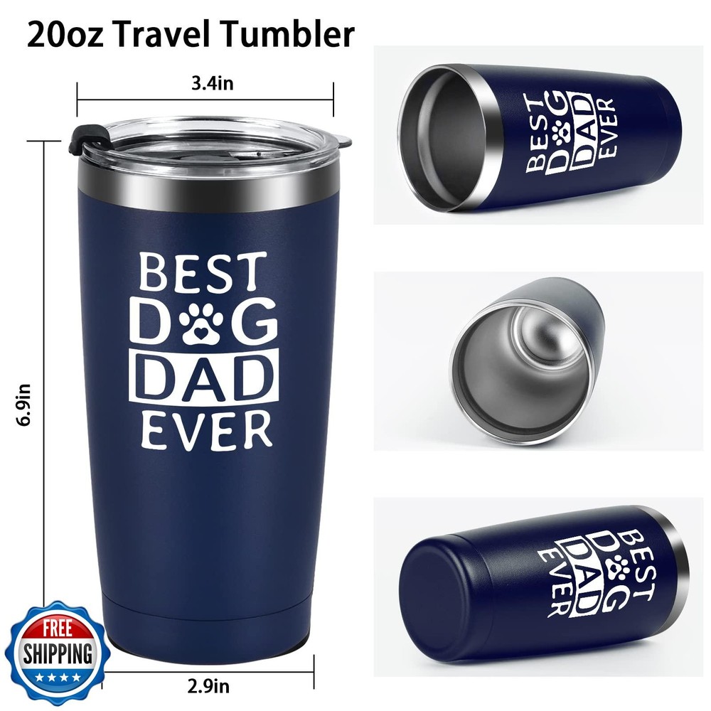Qtencas Dad Gifts, Best Dog Dad Ever Stainless Steel Insulated Travel Tumbler, Fathers Day Gift for Dad to be New Dad Father Papa from Daughter Sons, Dog Dad Gifts, Dad Christmas Gifts(20oz, Darkblue) Features BEST DOG DAD EVER GIFTS: Wonderful fathers day gifts for dad- “ BEST DOG DAD EVER” travel tumbler is specially designed for dad, dog dad, new dad, step dad, dad to be, first time dad, dad who wants nothing/has everything, father, papa, dog lover from daughters sons kids. It specially fit to Father's Day, Christmas, Birthday. MULTI-PURPOSE APPLICATION: 20 oz large capacity tumbler is suitable for various occasions, such as running, hiking, swimming, climbing, school, office ect. This insulated tumbler is also suitable for coffee, wine, juice, beer, water, tea, champagne. COMPLETE ACCESSORIES: This best dad gifts stainless steel insulated travel tumbler is equipped with a complete set of accessories, including two stainless steel straws, a sponge cup brush, a stainless steel straw brush, and 1 BPA-free lid. 304 FOOD GRADE STAINLESS STEEL: Made of the 304 food grade stainless steel, so this best dog dad gifts from daughters stainless steel travel tumbler is safe and unbreakable. This high quality material can also make the surface of tumbler sweat-proof. There is no sweat between your hand and tumbler no matter how long you hold it. DOUBLE WALL VACUUM INSULATION: Tested by the expert, this fathers day gifts for dad from sons insulated travel tumbler can keep the hot drinks hot for 5 hours or cold drinks cold for 9 hours because of the double wall vacuum insulation design. Regardless of spring, summer, autumn and winter, it can meet your needs according to the changes in the weather. Shipping Free & Fast Shipping: We offer free shipping to most of the USA with a normal delivery time of 3-7 days. However, due to the current situation, additional delivery time (up to 3 weeks) may be required for some items. Alternative Carriers: We may use alternative carriers (e.g., USPS, FedEx, UPS) to ensure your package arrives safely and on time. Due to the use of multiple carriers, we are unable to provide a tracking number automatically. Handling Time: Orders are processed and shipped within 1-2 business days of receiving cleared payment. Shipping Restrictions: Shipping to Alaska, Hawaii, Puerto Rico, Guam, and other US territories may incur shipping charges or delivery restrictions. Please contact us before ordering, or your order can be refunded/cancelled. State Restrictions: Certain items may not be shipped to California due to state regulations. Contact for Tracking Updates: If you require tracking updates or have any concerns about the delivery of your order, please feel free to contact us, and we will be happy to assist you. Return Policy 30-Day Hassle-Free Returns: If you are not completely satisfied with your purchase, you can return the item for free within 30 days of receiving it for a full refund or exchange. Easy Return Process: Contact us, and we will provide you with a prepaid return shipping label and detailed instructions. No Restocking Fee: There are no restocking fees for returns. However, the buyer is responsible for return shipping costs if the return is not due to a seller"s error. Refund Processing: Refunds will be processed within 1 business day of receiving the returned item in its original condition. Feedback Your feedback is extremely important to us. We strive to provide the best products and customer service possible. If you are satisfied with your purchase, please take a moment to leave us a positive review. If you have any concerns or issues with your order, please contact us before leaving negative feedback. We are committed to resolving any problems and ensuring your satisfaction. Contact Us If you have any questions or concerns, please feel free to reach out to our customer support team. You can contact us through the eBay messaging system. We are available Monday to Friday, 9:00 am to 5:00 pm EST, and we will do our best to respond to your inquiry within 24 hours. Thank you for supporting our small family business!