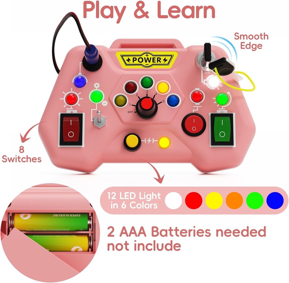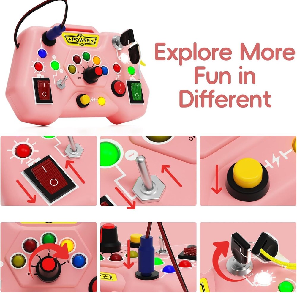 Free eBay listing template designed by dewiso.com Toddler Busy Board with LED Light - Baby Game Sensory Toy,Light Switches Montessori Toy for 1 Year Old,Kids Educational Learning Activities Toys,Travel Toys and Birthday Gifts for 1 2 3 4 Boys Girls FREE AND FAST SHIPPING! 【Sensory Busy Board with LED Lights】Our busy board has 6 different types of switches, the baby can turn the key, insert the cable, press the button, push the lever and perform other different operations to improve fine motor skills, hand-eye coordination and more. Different colours stimulate sensory development and promote creativity 【LED Switch Busy Board】: This light switches montessori toy from 1 year is designed for curious babies who like to play around with things in the house. The interesting handle shape, various colour lamps and switches will immediately attract baby's attention, and diverse play modes can immerse the baby in exploration for hours. 【Safe& High Quality】Our LED busy board for toddlers is made of high-quality ABS plastic, each part has passed the quality test and does not fall off easily. They are sturdy and durable enough to withstand rough play.Built to withstand vigorous play, it ensures safety and longevity, making it the perfect companion for your baby's developmental journey. 【Portable for Travel and More】Our busy board with LED light is designed for on-the-go fun. Whether you're outdoors, traveling, or at home, it's lightweight and easy for parents to carry, suitable for different scenarios, especially during long trips, it can keep the baby busy for a few hours to help the baby focus on the seat, will not be bored, so that the baby can enjoy the fun of travelling. 【Great Gift for Toddler】Our Pink busy board is the ideal learning and educational toy for toddlers, As an educational toy, it is also a great gift for children for birthdays, Halloween, Christmas, Easter, New Year and other festivals It can both promote healthy growth and reduce dependence on screens and encourage your child to stay away from electronic devices. Product We offer a 30-Day Return Policy on items which you are not completely satisfied with. You have the option for a full-refund or an exchange of the item. No returns are available on items shipped outside of the US . Shipping We offer Free Shipping to the US and ship within 2 business days of payment, usually sooner. We use UPS express shipping. That's why your products are usually delivered within 3 days . Contact We try our very best to make sure every customer is completely satisfied. If there's a problem , message us! We're happy to help. 24/7 live chat available.