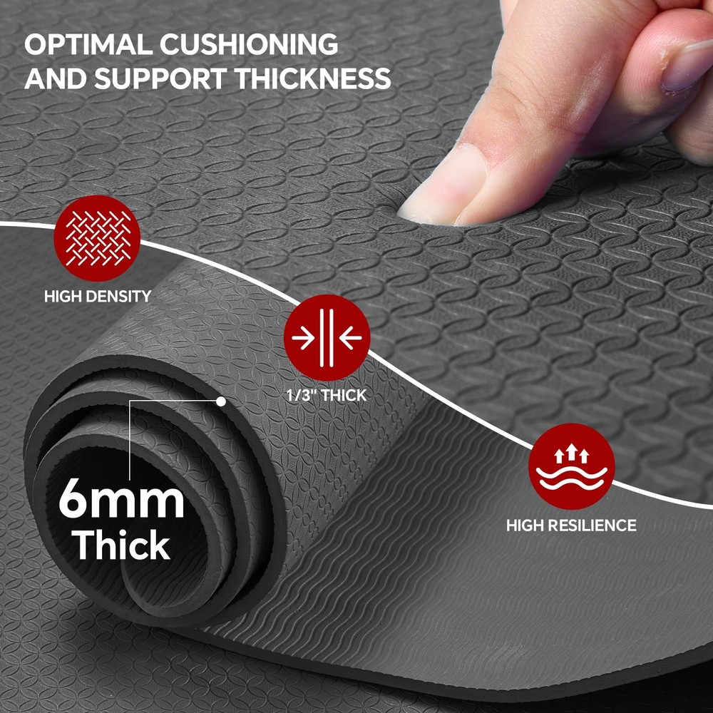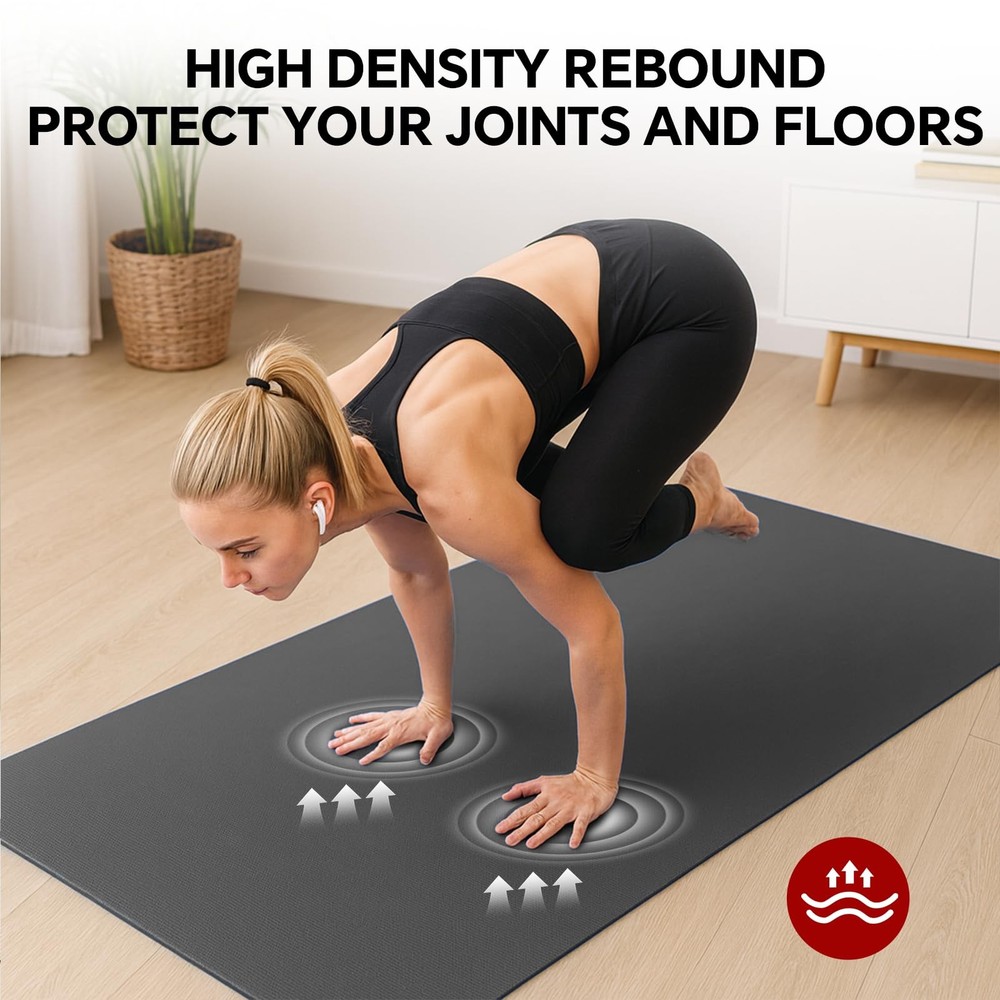 Our thick workout mat is designed to enhance your yoga experience. with features of gym mats for home gym, exercise mat thick is for practitioners of all levels. 3-layer Design: Our exercise mats for home workout features a 3-layer system that ensures optimal performance. The wear-resistant top of floor mats for gym guarantees longevity. The shock absorption mid-layer of gym floor mats minimizes joint impact. The anti-slip bottom of thick exercise mats for home workout ensures stability. Meet Various Needs: Our gym flooring for home gym is designed to cater to various fitness needs. Gym floor mat is suitable for barefoot training and can adapt to different yoga styles. Double-sided Anti-slip Texture: The non-slip texture of workout floor mats for home gym firmly grips the floor, offering traction and preventing slips. 2 Sizes Available: Our gym matt for home gym comes in two size options, ensuring ample room for various fitness activities. We have the size to accommodate your needs on exercise mats for home gym. 【Spacious & Designed for Movement】 large yoga mats come in large dimensions: 6'×3', 6'×4', providing up to 120% more space than standard yoga mats. Suitable for various barefoot exercises such as yoga, Pilates, stretching, meditation, planks, push-ups, squats, and cardio workouts