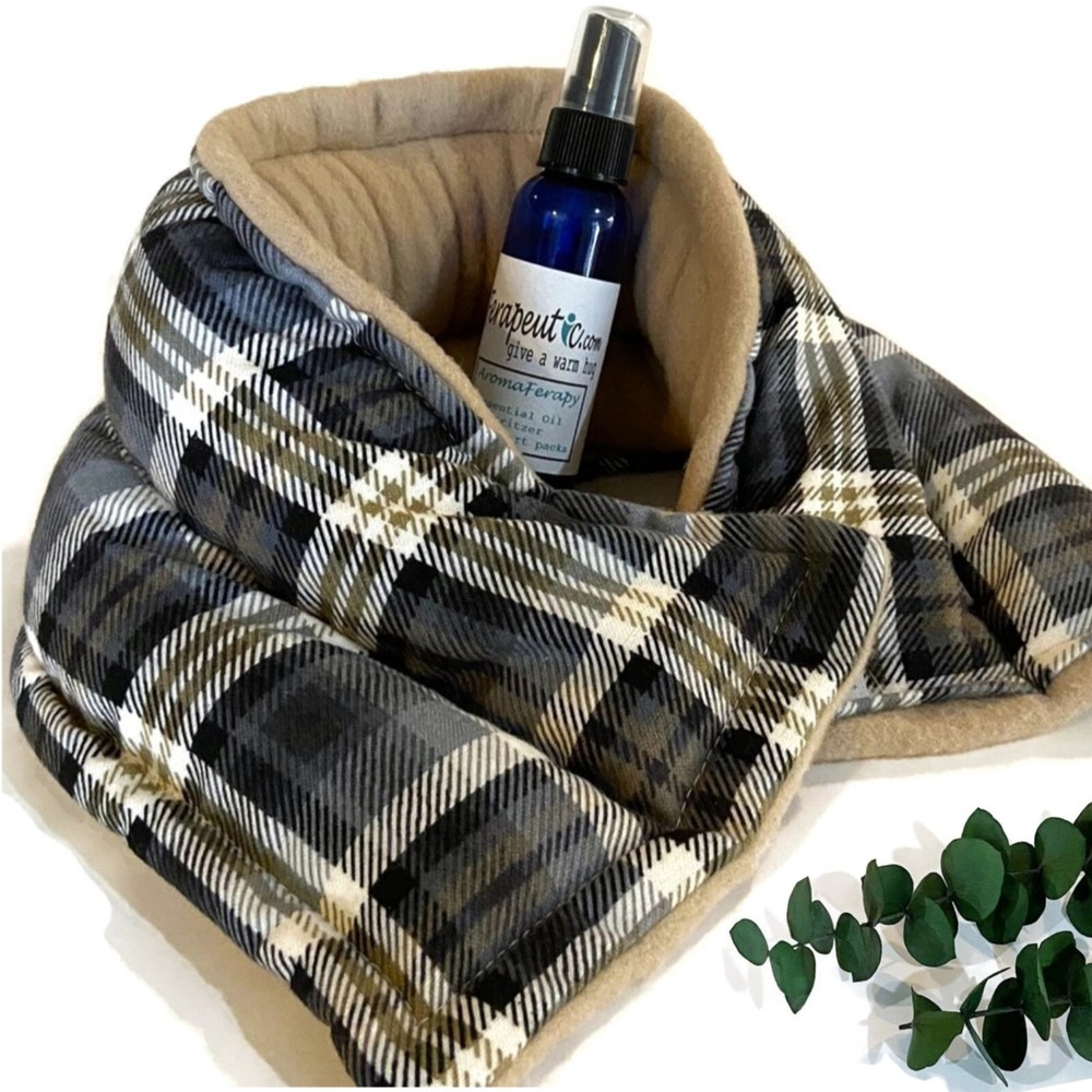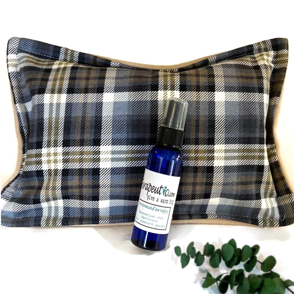 Send A Warm Hug ® to Dad for Fathers Day, Birthday or any day! Microwavable heating pads are the perfect, relaxing and useful gift! Set combinations of hot or cold packs, essential oil relaxation spray to scent packs, and A Warm Hug ® card as pictured. Choose Set Options in Drop Down Menu Heat Bag Set = Medium 8" x 10" Hot/Cold Pack, Essential Oil Spray, A Warm Hug® Card as pictured Neck Wrap Set = Double channeled Neck Wrap / 21" x 5.5", Essential Oil Spray, A Warm Hug® Card as pictured Deluxe Set = Medium Pack, Neck Wrap, Essential Oil Spray and A Warm Hug® Card as pictured Materials: Sturdy cotton fabric on one side with soft fleece on the other. Filled with rice and flaxseed. Real Essential Oil Relaxation Spray to scent packs as desired. Gift card included. Directions: Warm in the Microwave for relaxing moist heat or chill in the freezer for mild, soothing cool. Detailed directions on packaging. Sending as Gift: Please change address during checkout if sending as a gift. We're happy to include a note from you inside the A Warm Hug® card. Packaging: Professionally packaged in frosted, reusable gift bag with A Warm Hug card as pictured included. Detailed directions are on the back of gift card. Construction: Handmade in USA by our small family owned business. Double stitched for durability. Cleaning: Use a very damp cloth to spot clean the outside. Spray laundry cleaners are fine but do not submerge in water. Packs automatically sanitized each time they are microwaved. Scents: We use real lavender essential oil for our aromatherapy pack sprays Customer Service : We are a small family owned business committed to 100% customer satisfaction. We value our customers and repeat business more than a single sale and will bend over backwards to make your experience with us a positive one. If for any reason you need to return (though we sure hope not!) just let us know because if you don't love it, we're not happy either.
