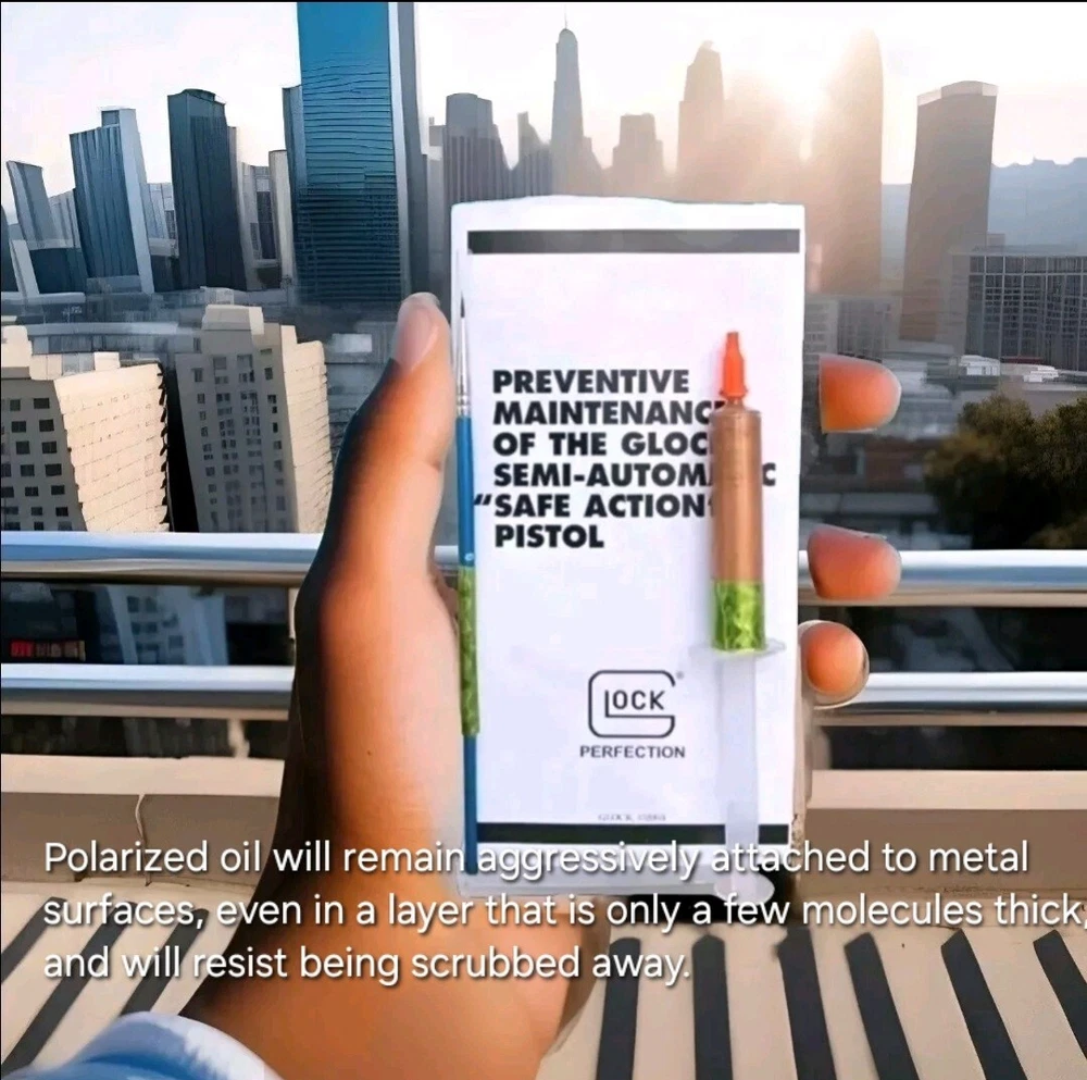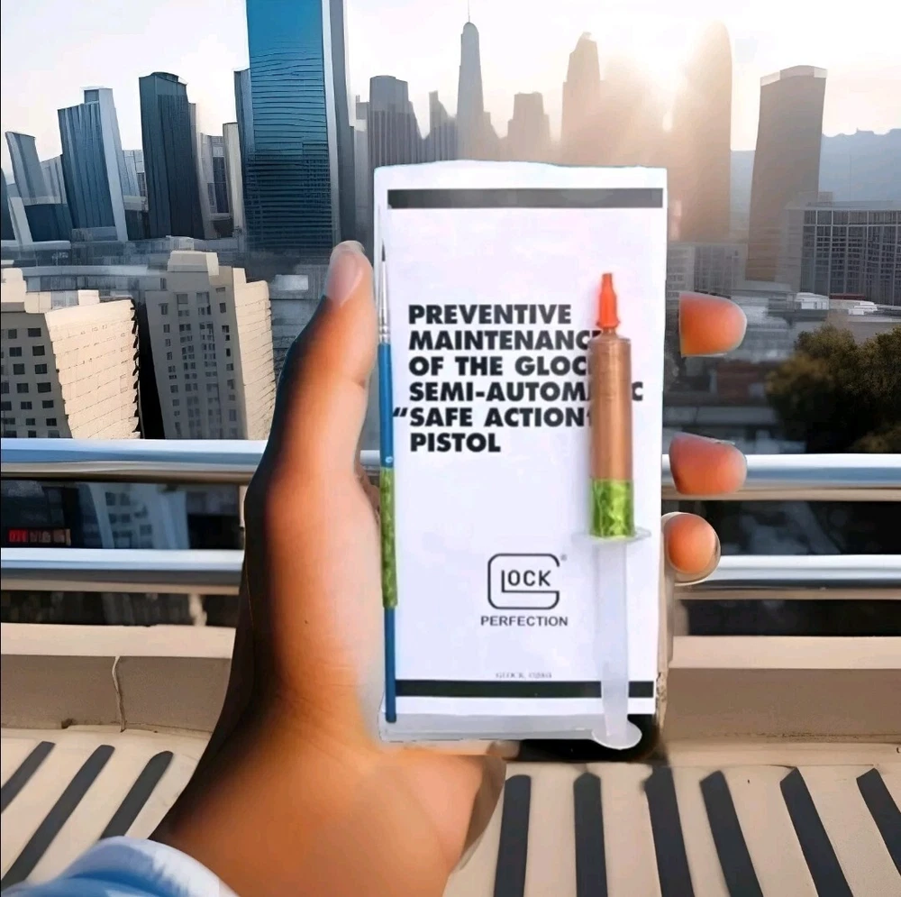 5cc 5ML SIZE The perfect gift for the one who has everything GLOCK. Sure will be a surprise! "The copper colored lubricant found on portions of the slide and trigger connector should not be removed...After cleaning...Apply the copper colored lubricant to portions of the frame, slide and trigger connector..."-Glock Inc 2003 GLOCK COPPER GUN GREASE: 5cc The spirit of the age is to make you forget. To forget the genius of Gaston Glock. To not remember the copper colored lubricant found on portions on the inside of new glock pistols. To not remember the instructions of "Should Not Be Removed " To not remember the Glock endurance test of one million rounds fired from a single Glock 17 pistol.