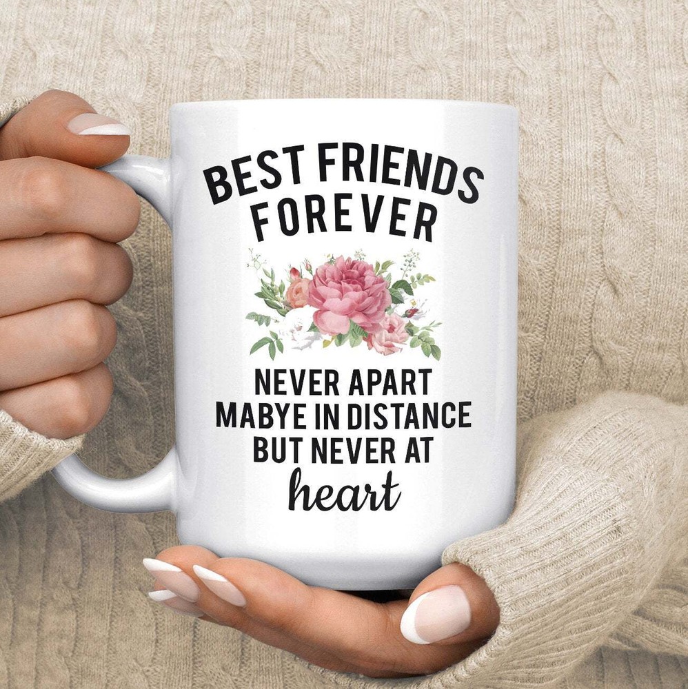 Coffee Mug Best Friends Forever Never Apart Long Distance Gift Custom State To Product Details.. This high quality 11oz. ceramic white mug has a premium hard coat that provides crisp and vibrant color reproduction sure to last for years. Perfect for all hot & cold beverages. The highest quality printing possible is used. It will never fade no matter how many times you wash it. Material: 100% Ceramic. Print both sides. Dishwasher and Microwave Safe. High Gloss + Premium White Finish. Printed in the U.S.A. Personalized & Custom. We support personalized and custom mug to add custom, when placing an order, you can add notes to the "order note" in shipping address section. Also you can contact us directly via message. Shipping Info. Ready to ship in 1 to 2 business days, All products are made-to-order and proudly printed in the United States. Shipped by USPS and DHL, You will receive your order in 5-7 days. Replace & Refund. All products are defective during shipping broken, chipped will be replaced free of charge. You are not satisfied with the product, we will refund 100% money to you. If any other issues arise, please do not hesitate to message, we would be more than happy to assist you.