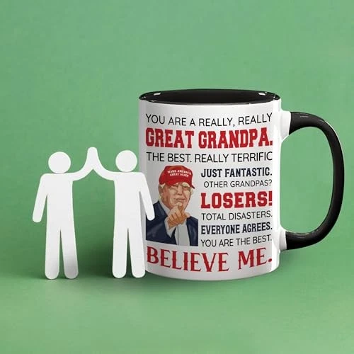 Material Type Free: BPA Free, Lead Free EAN: Does Not Apply Finish Type: Glossy Recommended Uses For Product: Home Reusability: Reusable Item Weight: 9.6 ounces Color: Grandpa Brand: Does Not Apply Included Components: Handle Age Range Description: Adult Shape: Round Product Dimensions: 3.25"W x 3.75"H Specific Uses For Product: Cold Drinks, Hot Drinks Type: Does Not Apply Item Height: 1 Item Width: 1 Date First Available: March 5, 2024 UPC: Does Not Apply Country of Origin: China Customer Reviews: 4.8 out of 5 stars MPN: Does Not Apply gtin13: Does Not Apply Special Feature: Microwave Safe Unit Count: 1.0 Count Item model number: VBT-11OZ001 Number of Items: 1 Material Feature: Microwave Safe Customer Package Type: FFP Size: 11oz Manufacturer: Does Not Apply Item Length: 1 Product Care Instructions: Dishwasher Safe Pattern: Letter Print Style: Ceramic Mug Theme: Grandpa