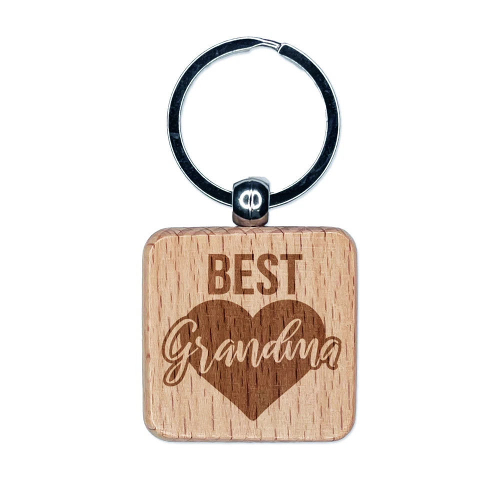 Best Grandma in Heart Grandparent's Day Engraved Wood Square Keychain Tag Charm
